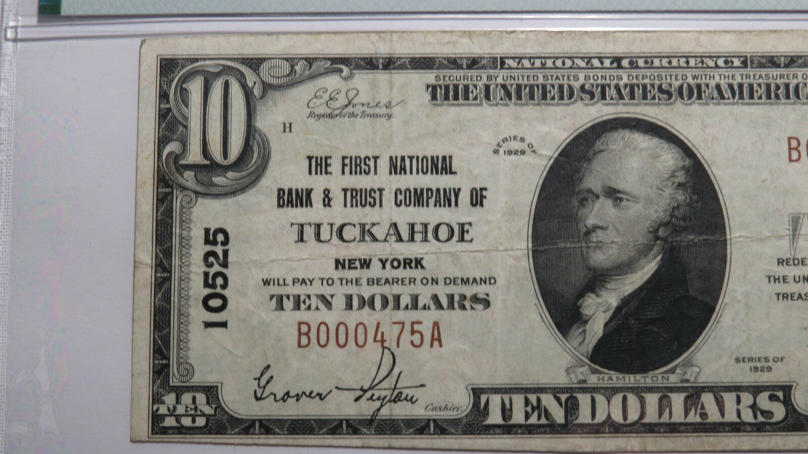 $10 1929 Type 1 Tuckahoe New York National Currency Note