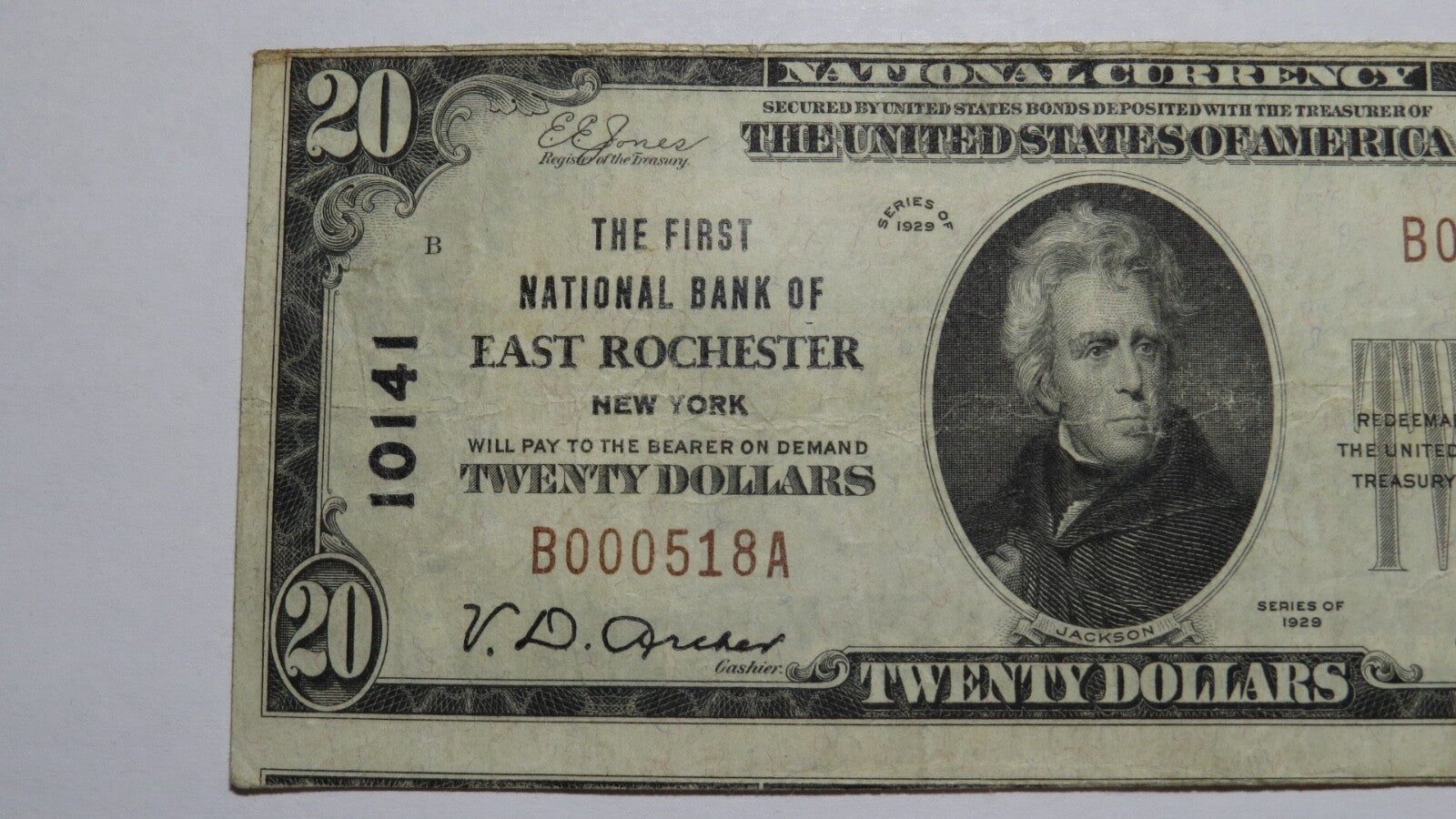 $20 1929 East Rochester New York NY National Currency Bank Note Bill #10141 VF++