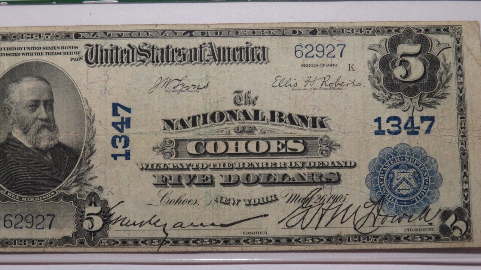 Up for auction is a $5 1902 Cohoes New York Plain Back National Currency Note