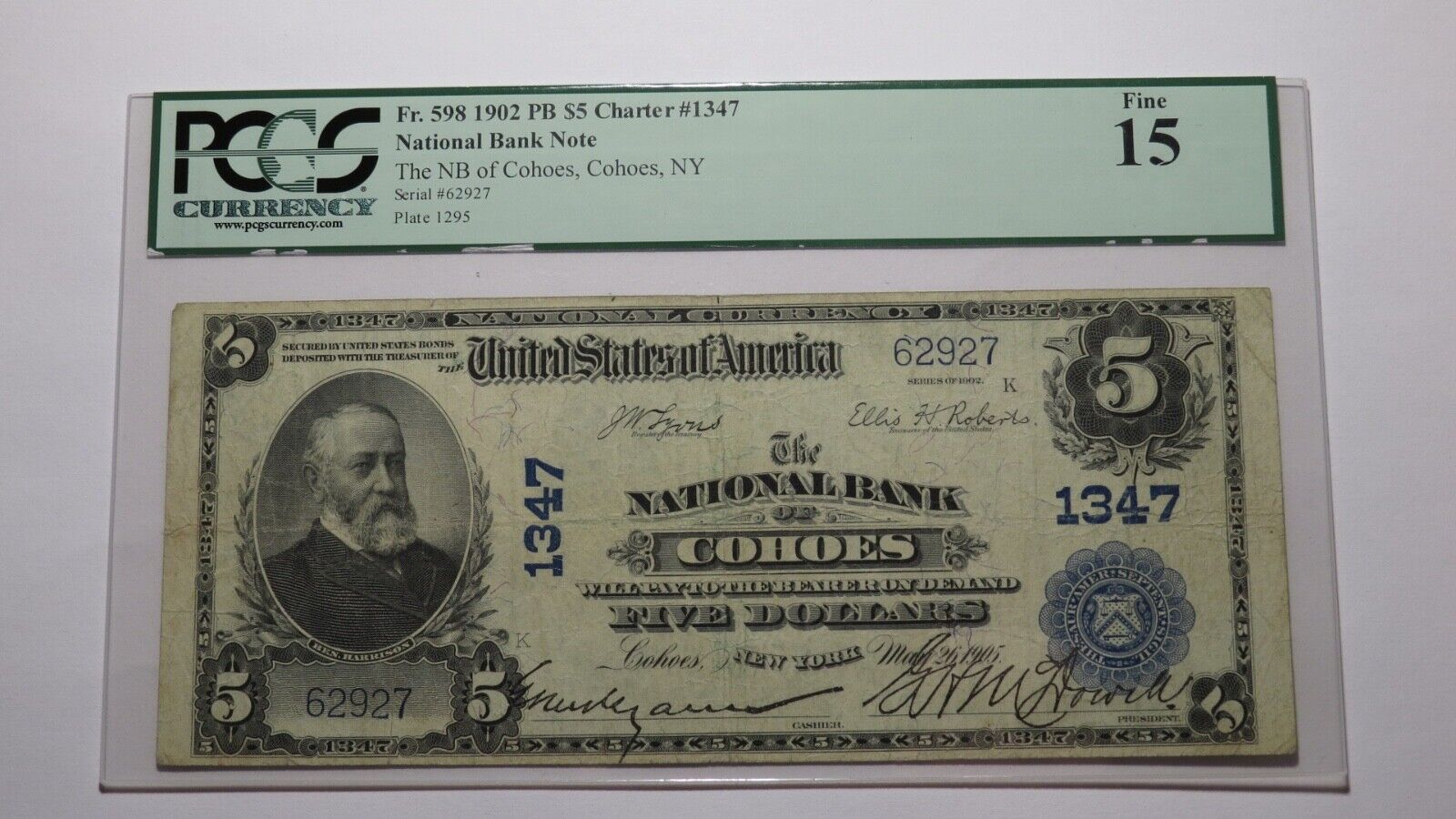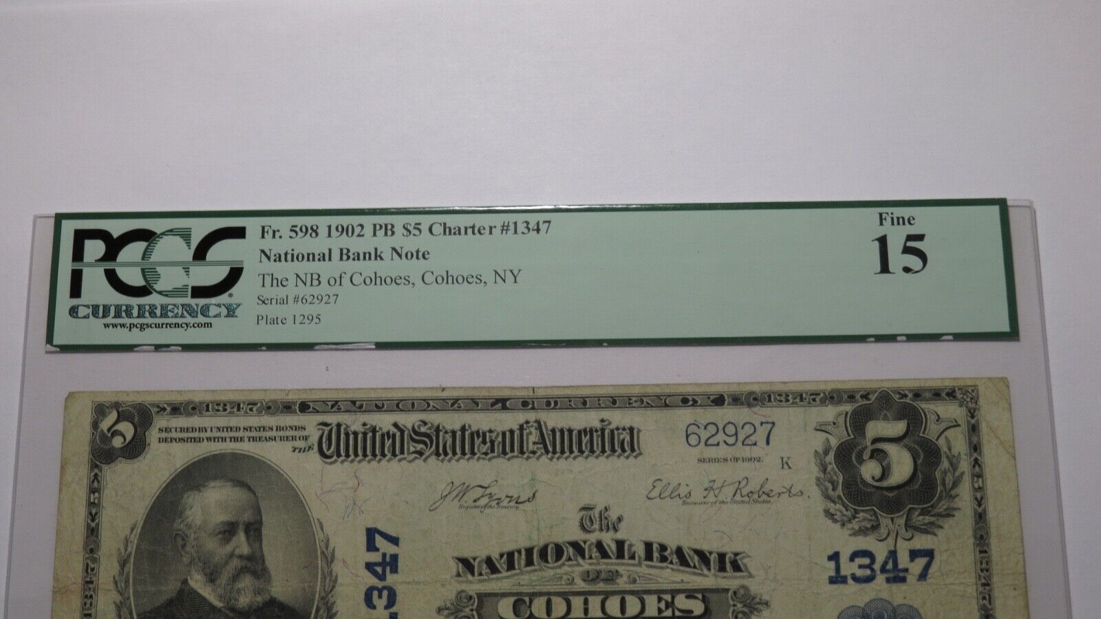 .  It is issued from The National Bank Of Cohoes.  This is a ONE BANK TOWN!  It is Charter #1347.  This bill is graded Fine 15 by PCGS.  There is absolutely nothing wrong with this note!   This bill is a must have for any collector of National Currency!