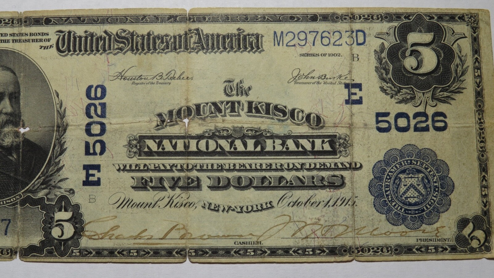 $5 1902 Mount Kisco New York Plain Back National Currency Note