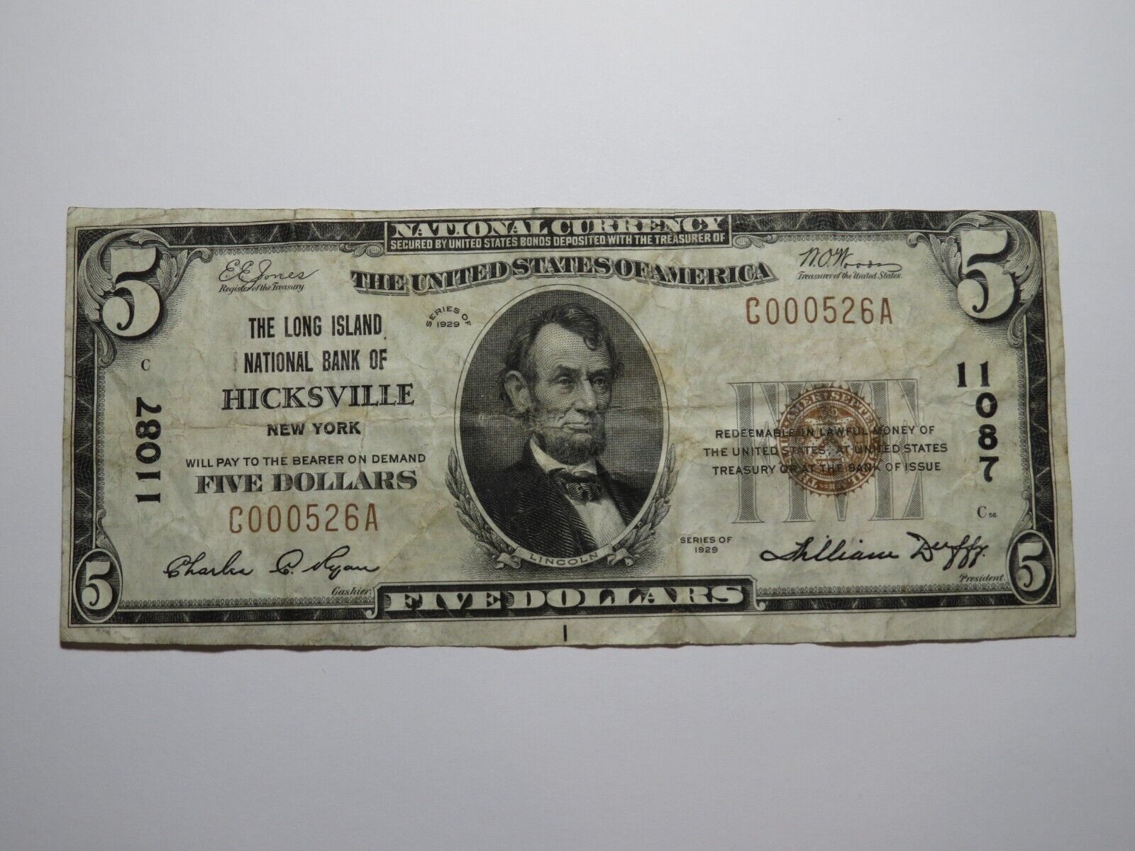$5 1929 Hicksville New York Type 1 National Currency Note