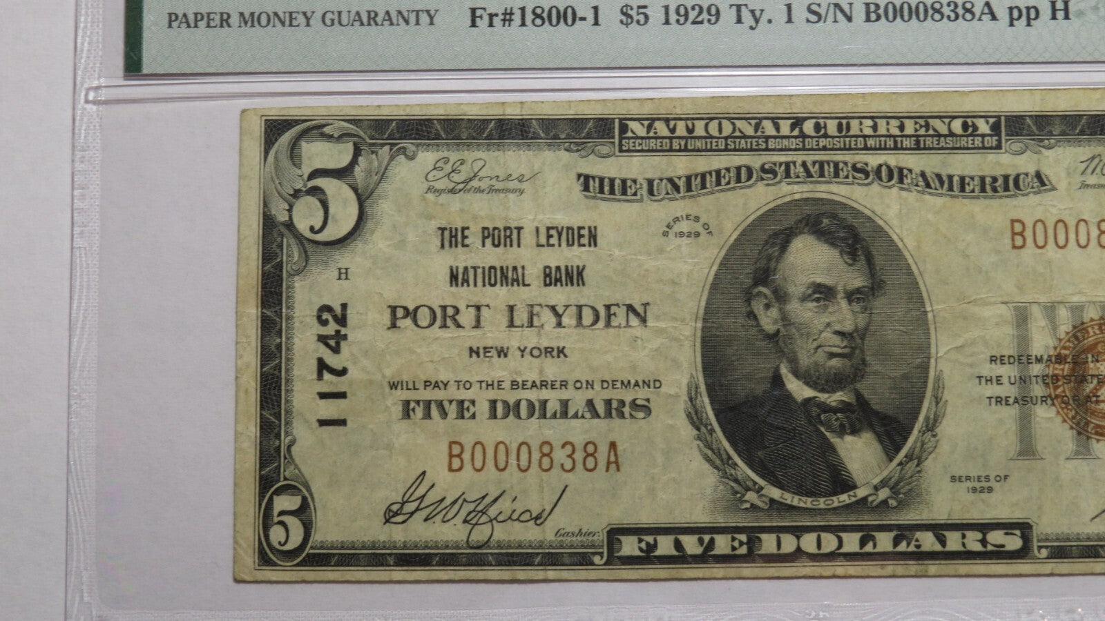 $5 1929 Type 1 Port Leyden New York National Currency Note