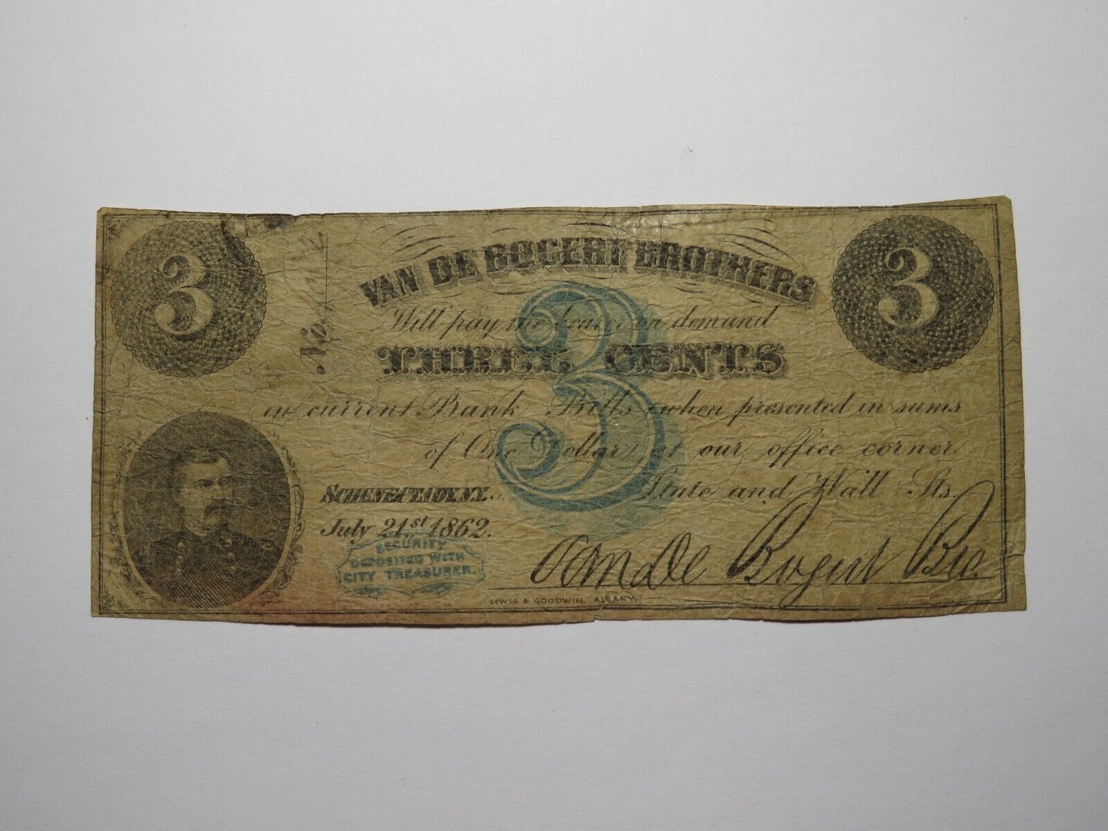 $.03 1862 Schenectady New York Obsolete Bank Note!