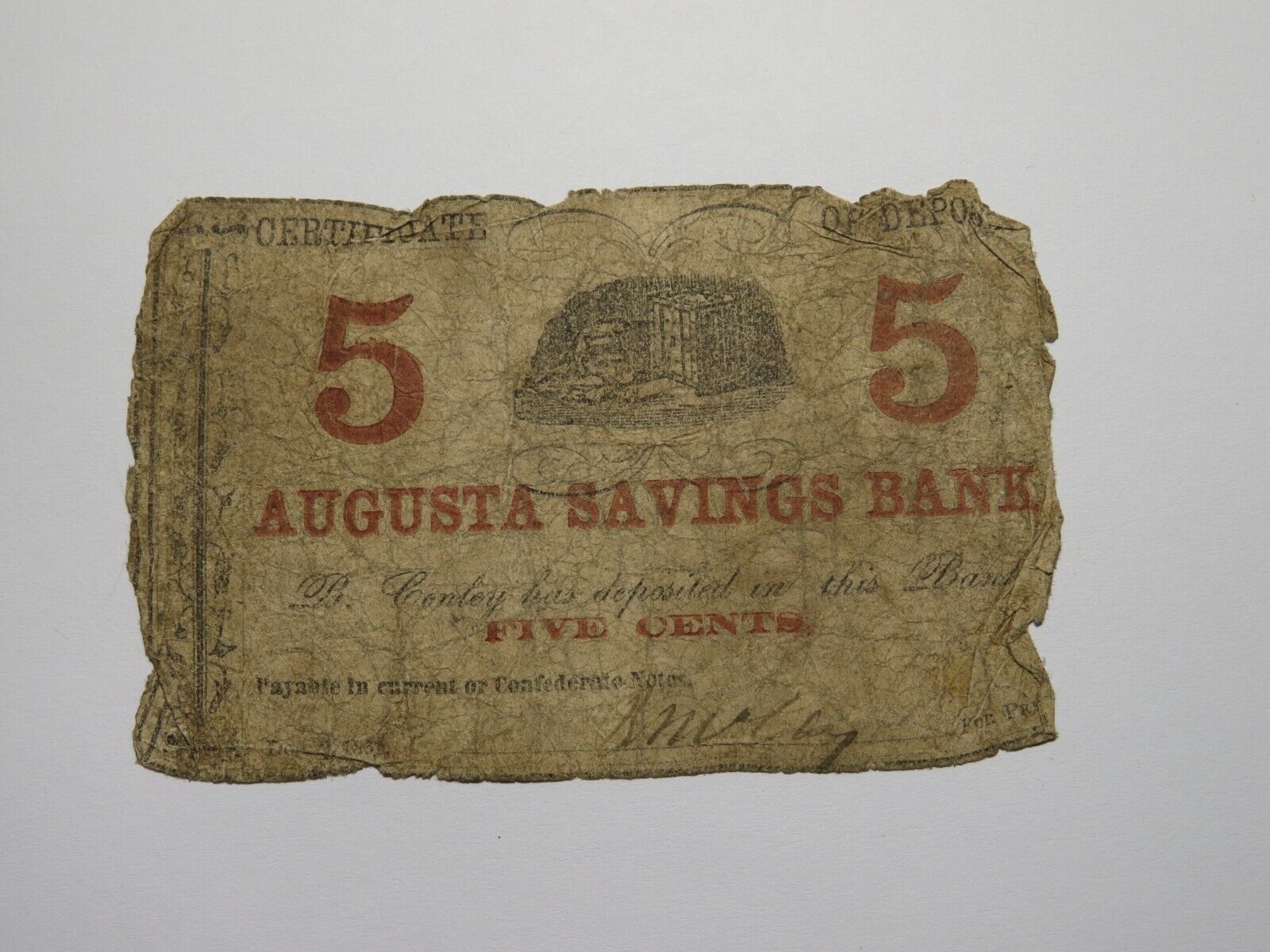 $.05 1861 Augusta Georgia Obsolete Bank Note!