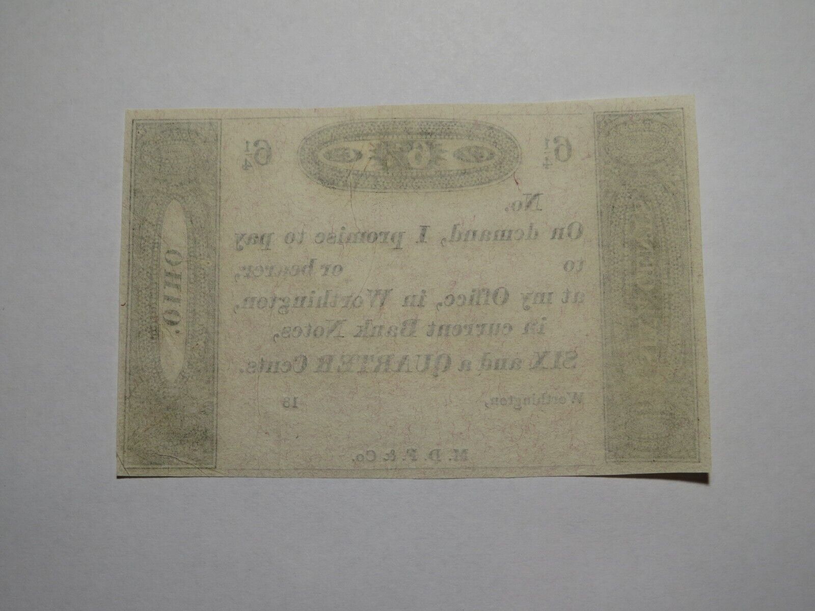 Up for auction is a $.06 1/4 18__ Worthington Ohio Obsolete Currency Bank Note Remainder