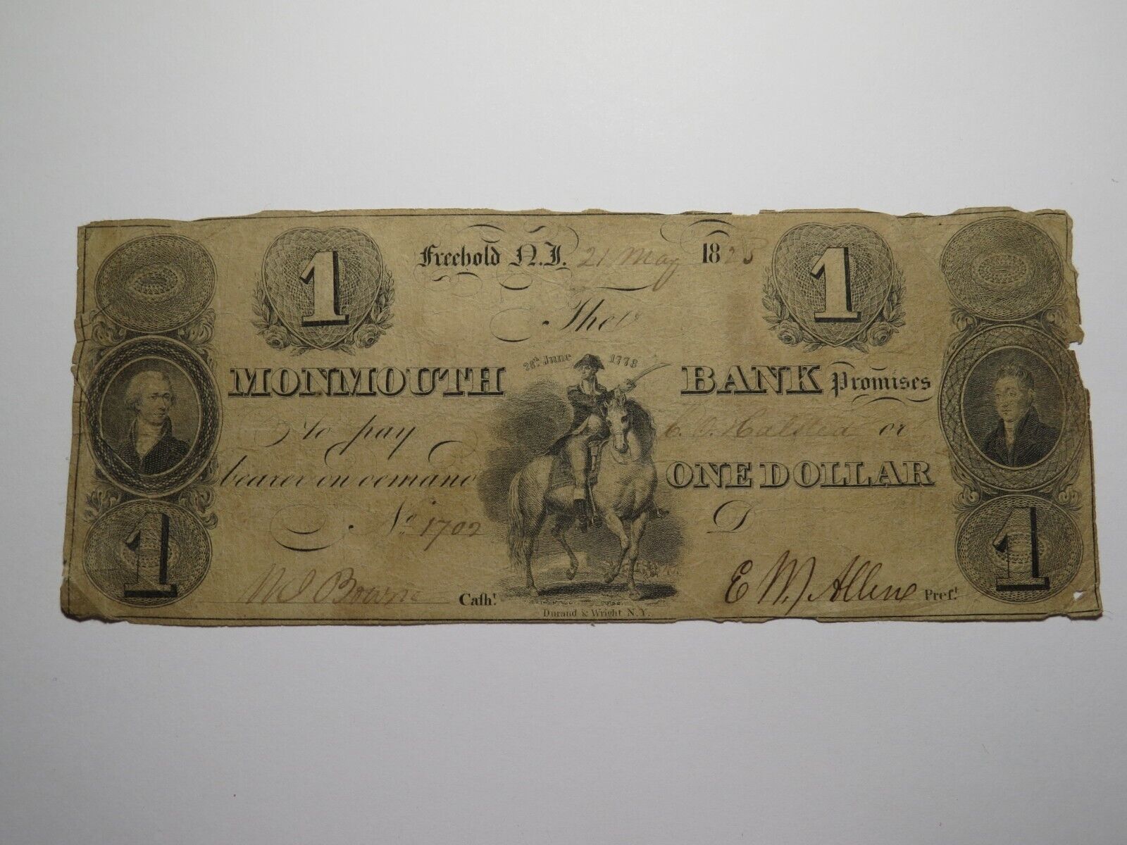$1 1825 Freehold New Jersey Obsolete Currency Bank Note Bill Monmouth Bank