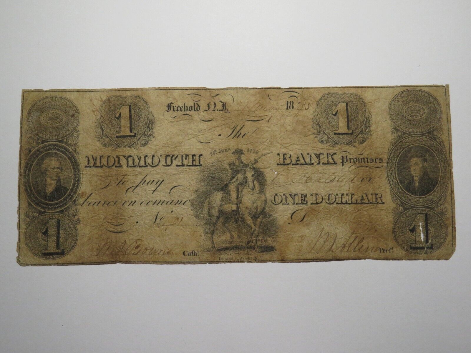 $1 1825 Freehold New Jersey Obsolete Currency Bank Note Bill Monmouth Bank RARE