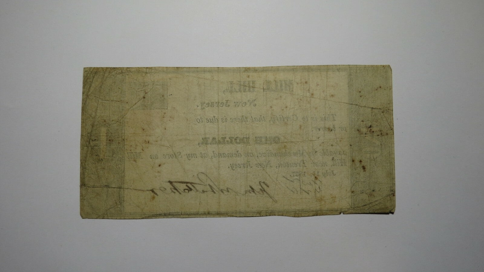 $1 1837 Mill Hill New Jersey Obsolete Trade Note!