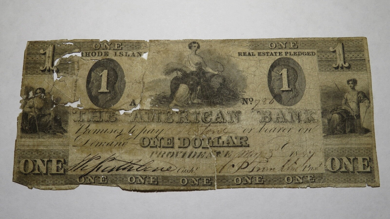 Up for auction is a $1 1847 Providence Rhode Island Obsolete Bank Note. This note is dated May 3, 1847. This note was issued by The American Bank of Providence. This note is extremely rare, and it is getting much harder to find this type of bill! This bill is a must have for any collector of Obsolete Currency!