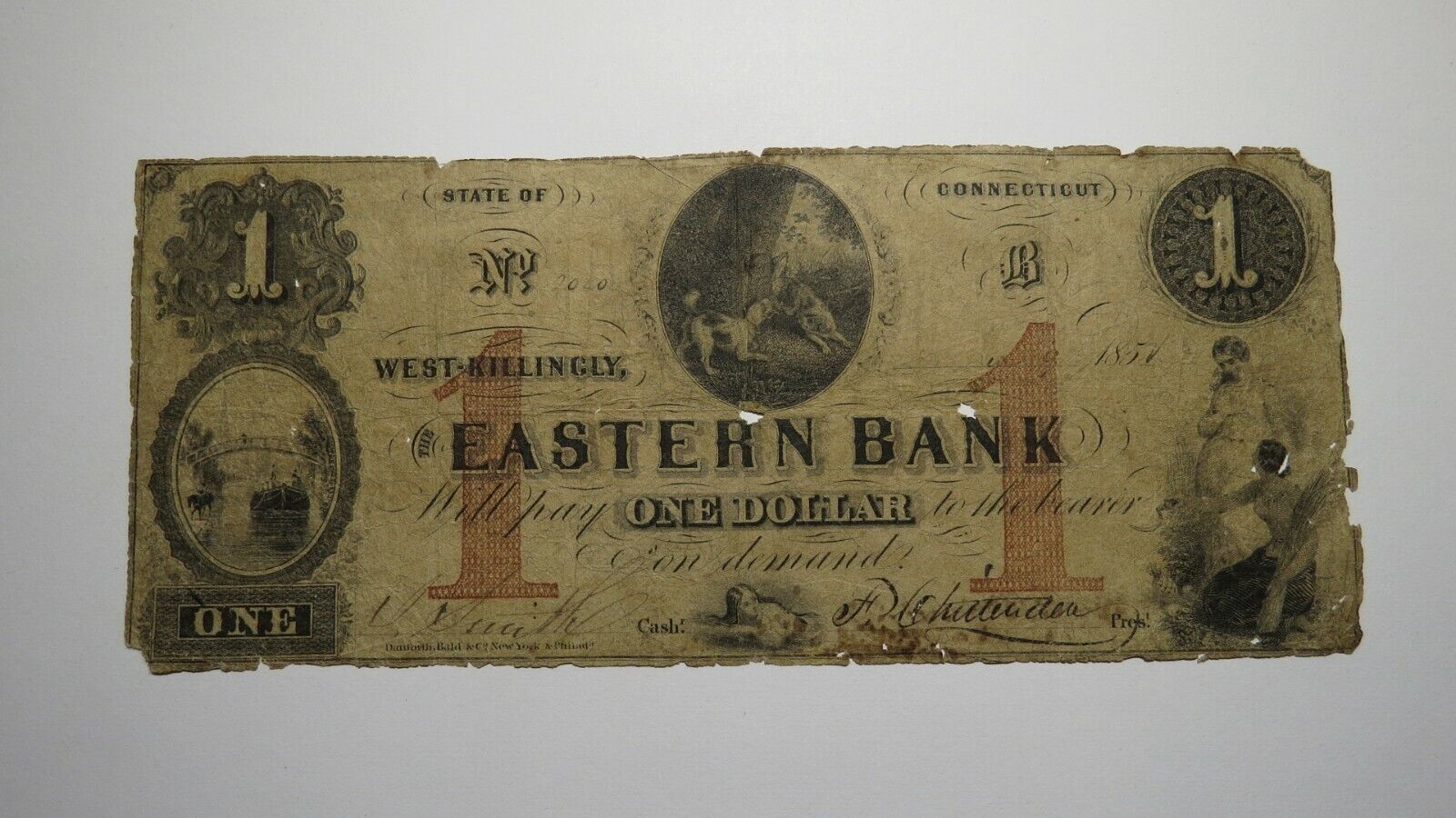 $1 1852 West Killingly Connecticut CT Obsolete Currency Bank Note Bill! Eastern