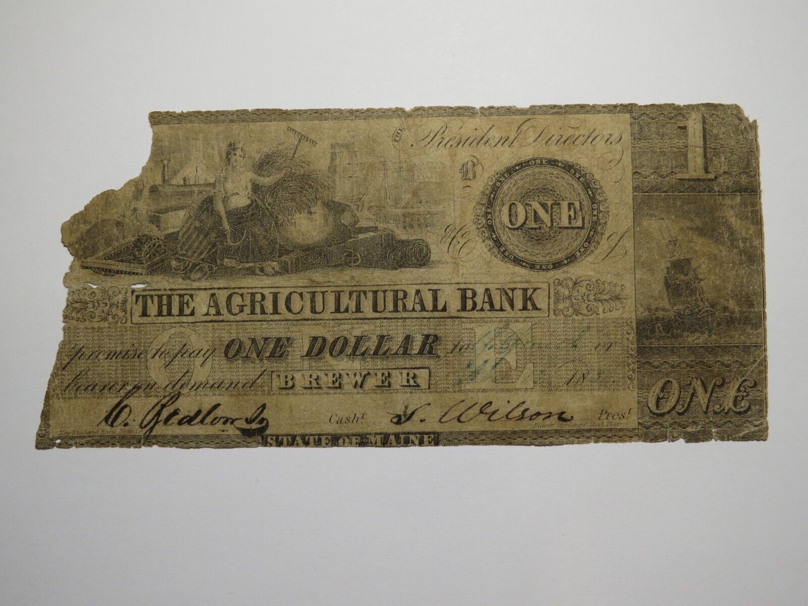 $1 1853 Brewer Maine Obsolete Bank Note!