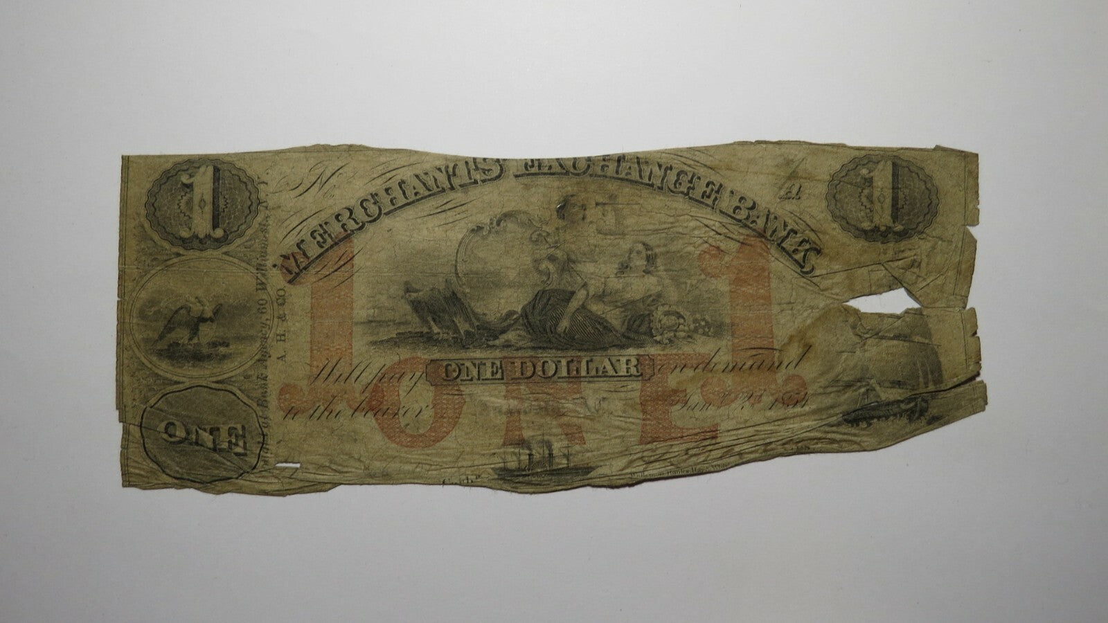 Up for auction is a $1 1854 Anacostia D.C. Obsolete Bank Note. This note is dated January 2, 1854. It is issued from The Merchants' Exchange Bank. This note is extremely rare, and it is getting much harder to find this type of bill! This bill is a must have for any collector of Obsolete Currency!