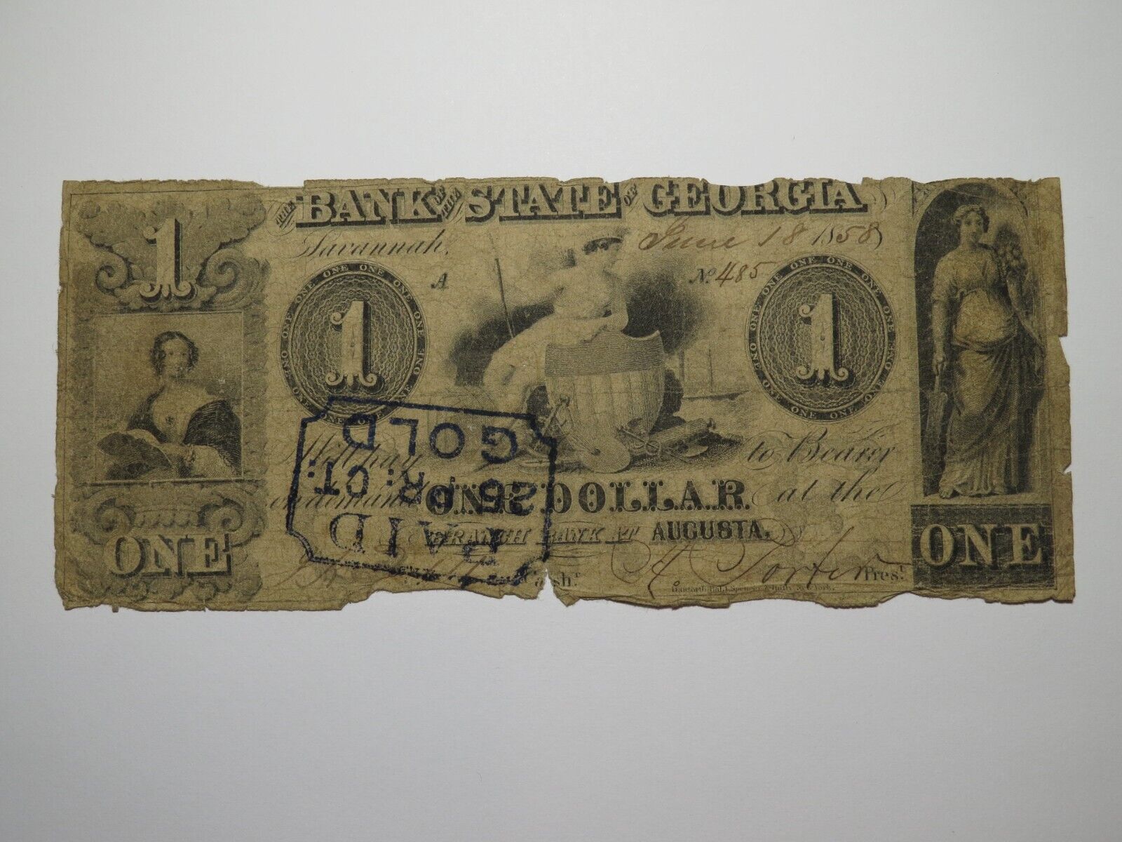 $1 1858 Augusta Georgia Obsolete Bank Note!