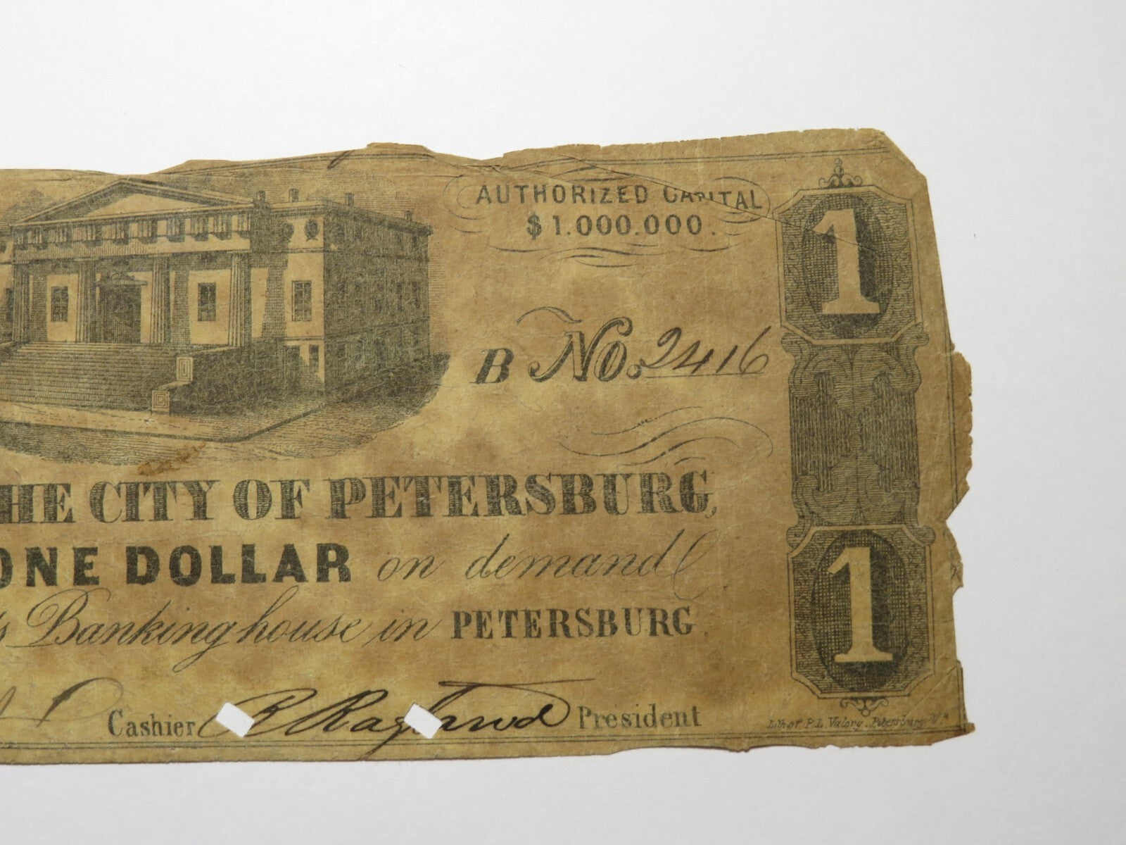 $1 1861 Petersburg Virginia VA Obsolete Currency Bank Note Bill City of Pete