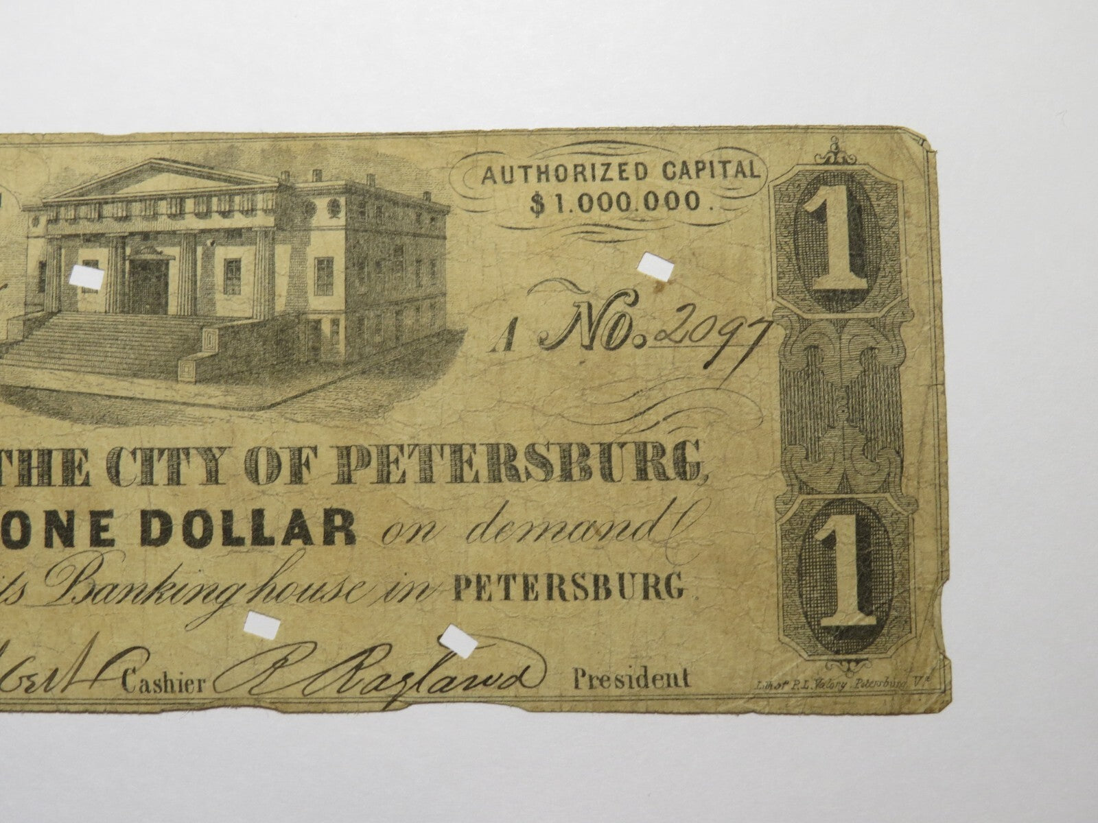 $1 1861 Petersburg Virginia Obsolete Bank Note!