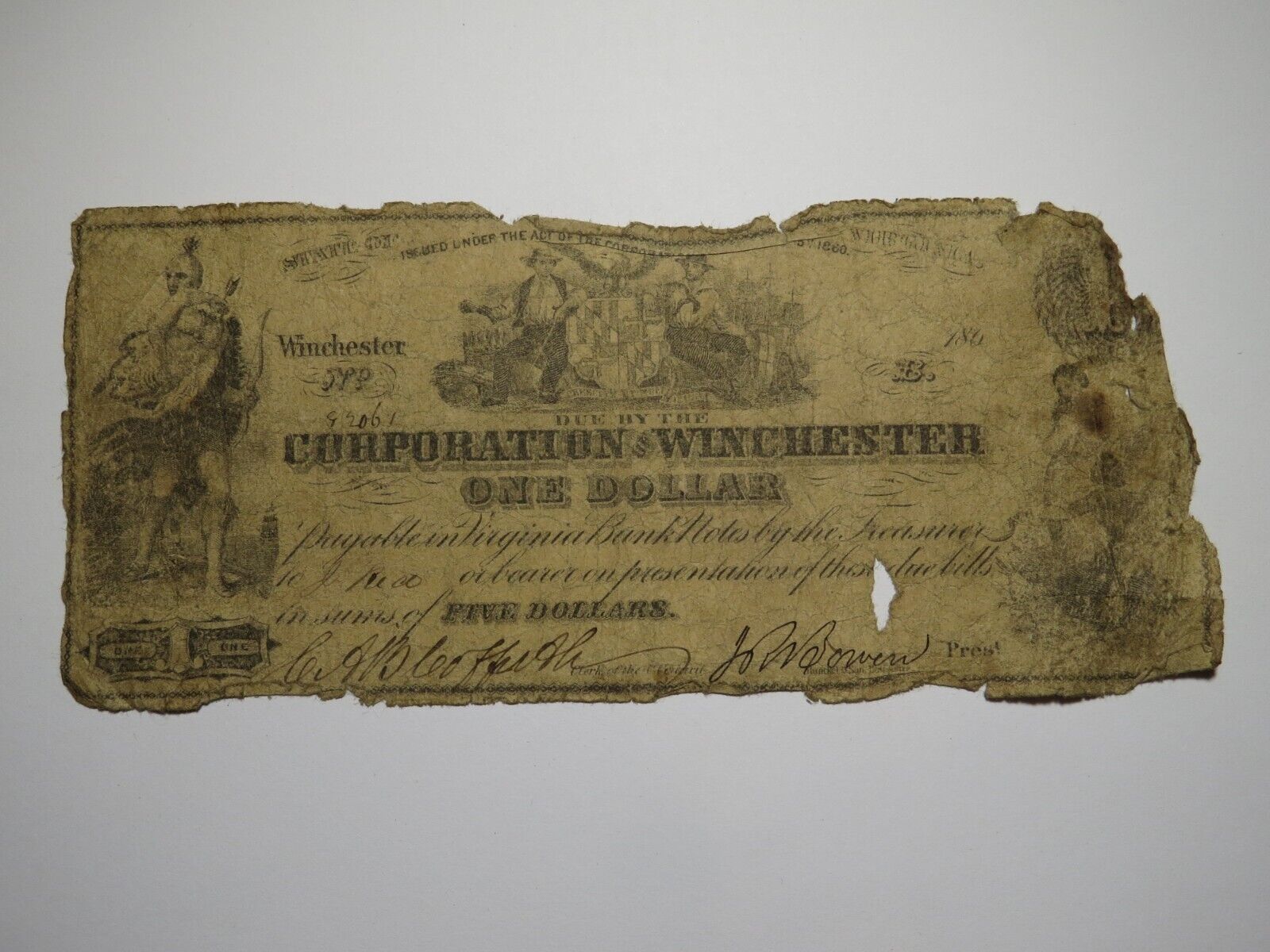 $1 1861 Winchester Virginia Obsolete Currency Bank Note Bill Corp. of Winchester