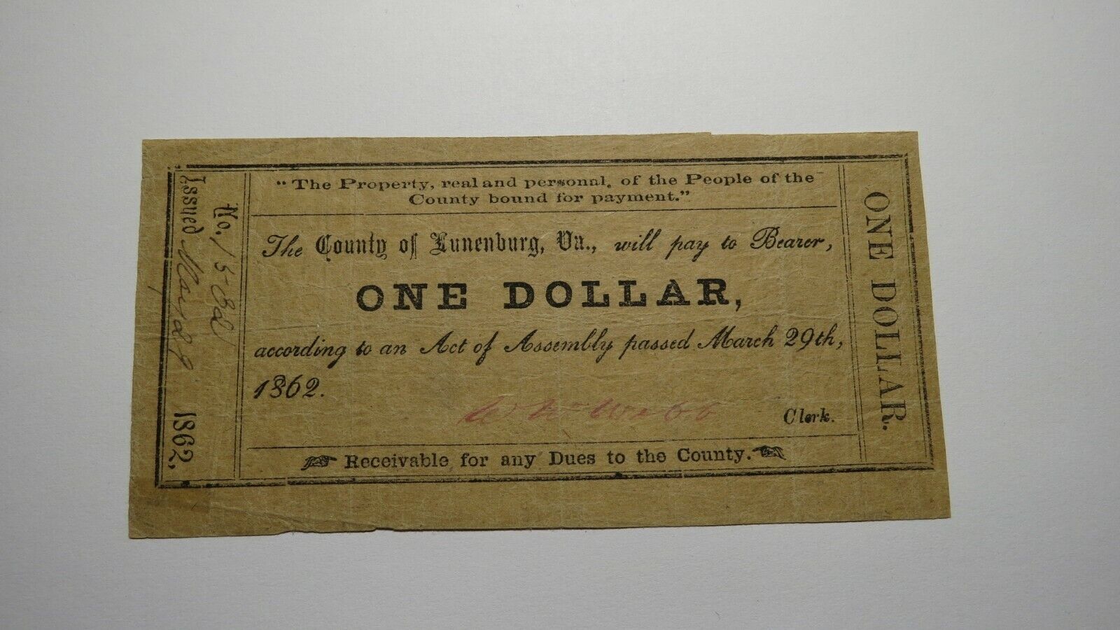 $1 1862 Lunenburg Virginia Obsolete Bank Note!