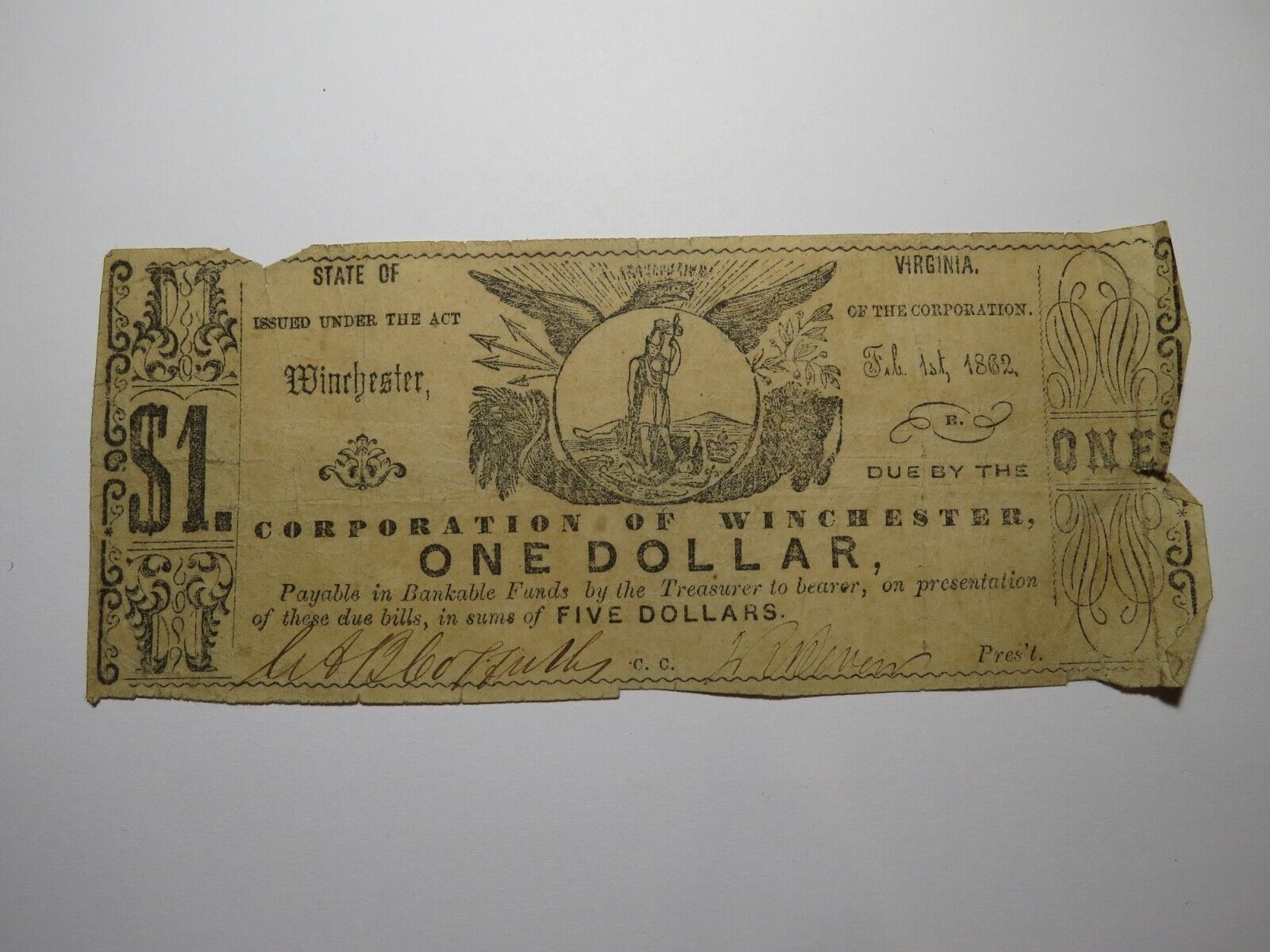 $1 1862 Winchester Virginia Obsolete Currency Bank Note Bill Corp. of Winchester