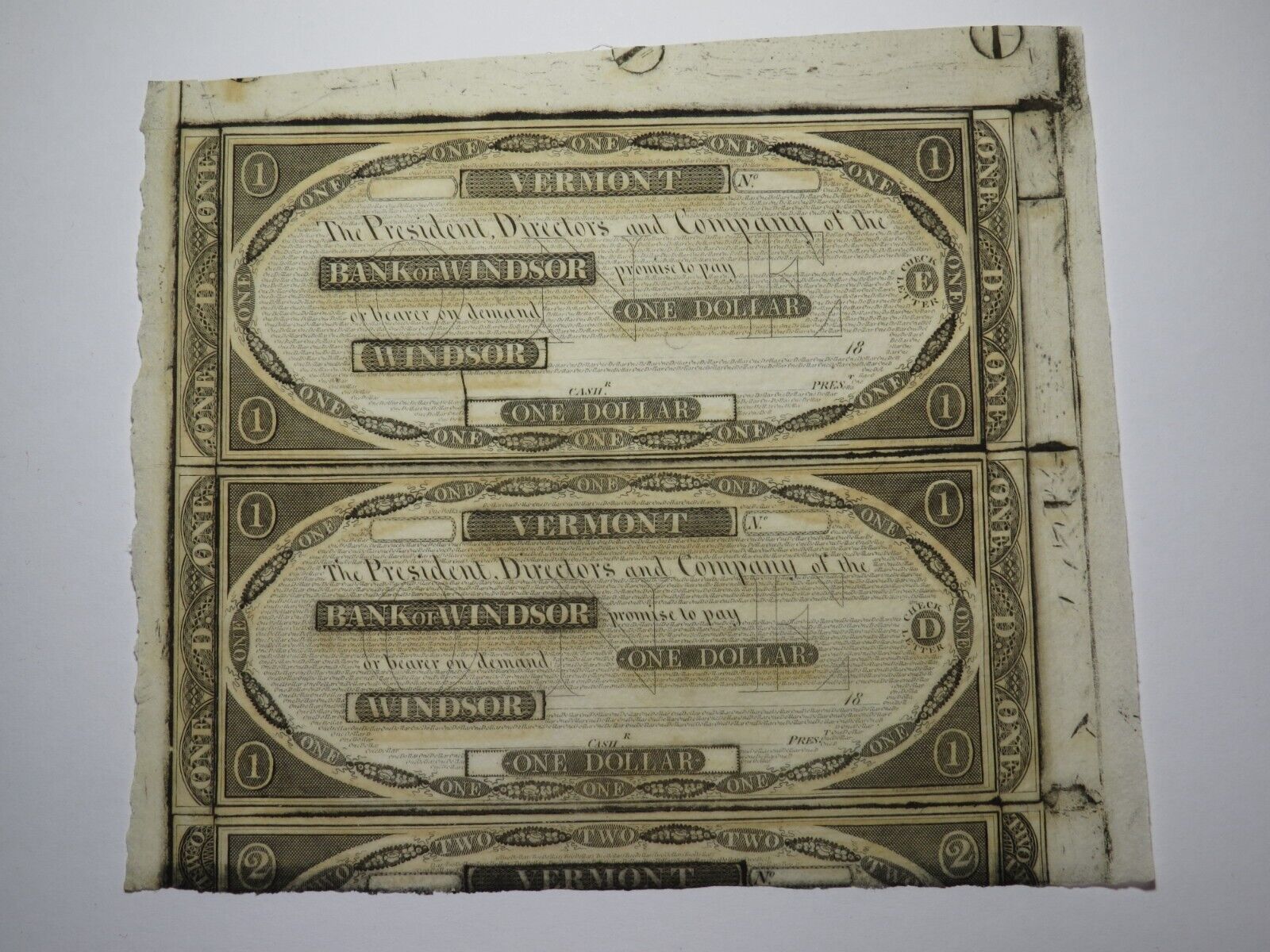 $1 18__ Windsor Vermont Uncut Obsolete Currency Sheet!