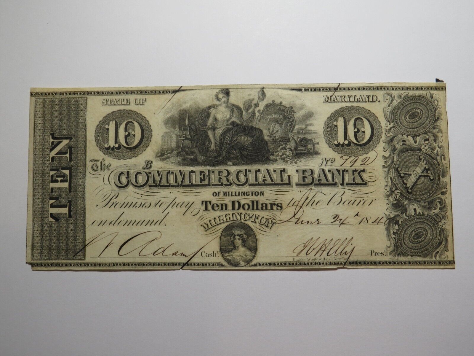$10 1840 Millington Maryland MD Obsolete Currency Bank Note Bill Commercial Bank