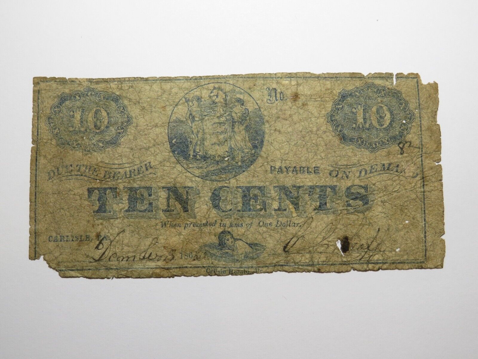 $.10 1862 Carlisle Pennsylvania Obsolete Currency Bank Note Bill RARE Issue!