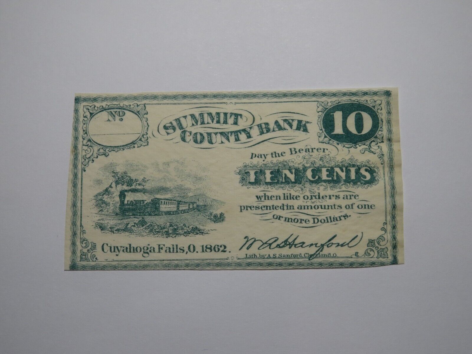 $.10 1862 Cuyahoga Falls Ohio OH Obsolete Currency Bank Note Bill Summit County