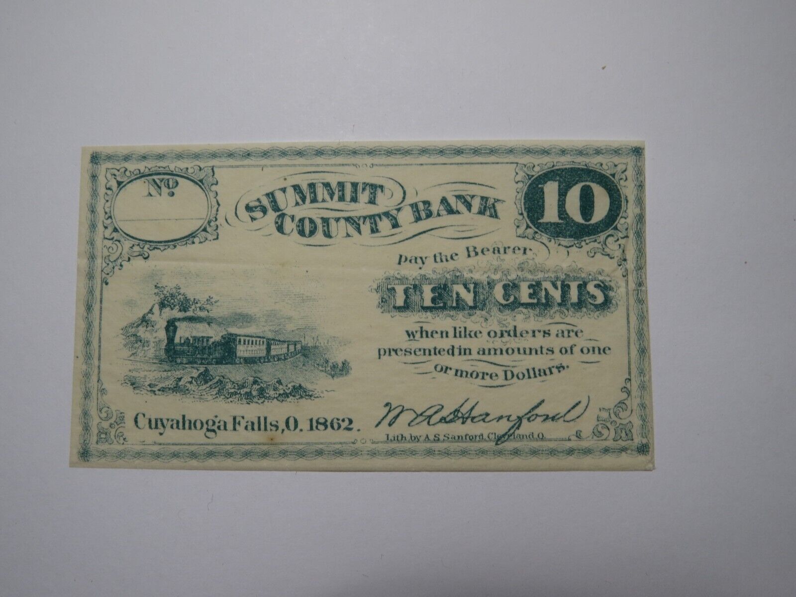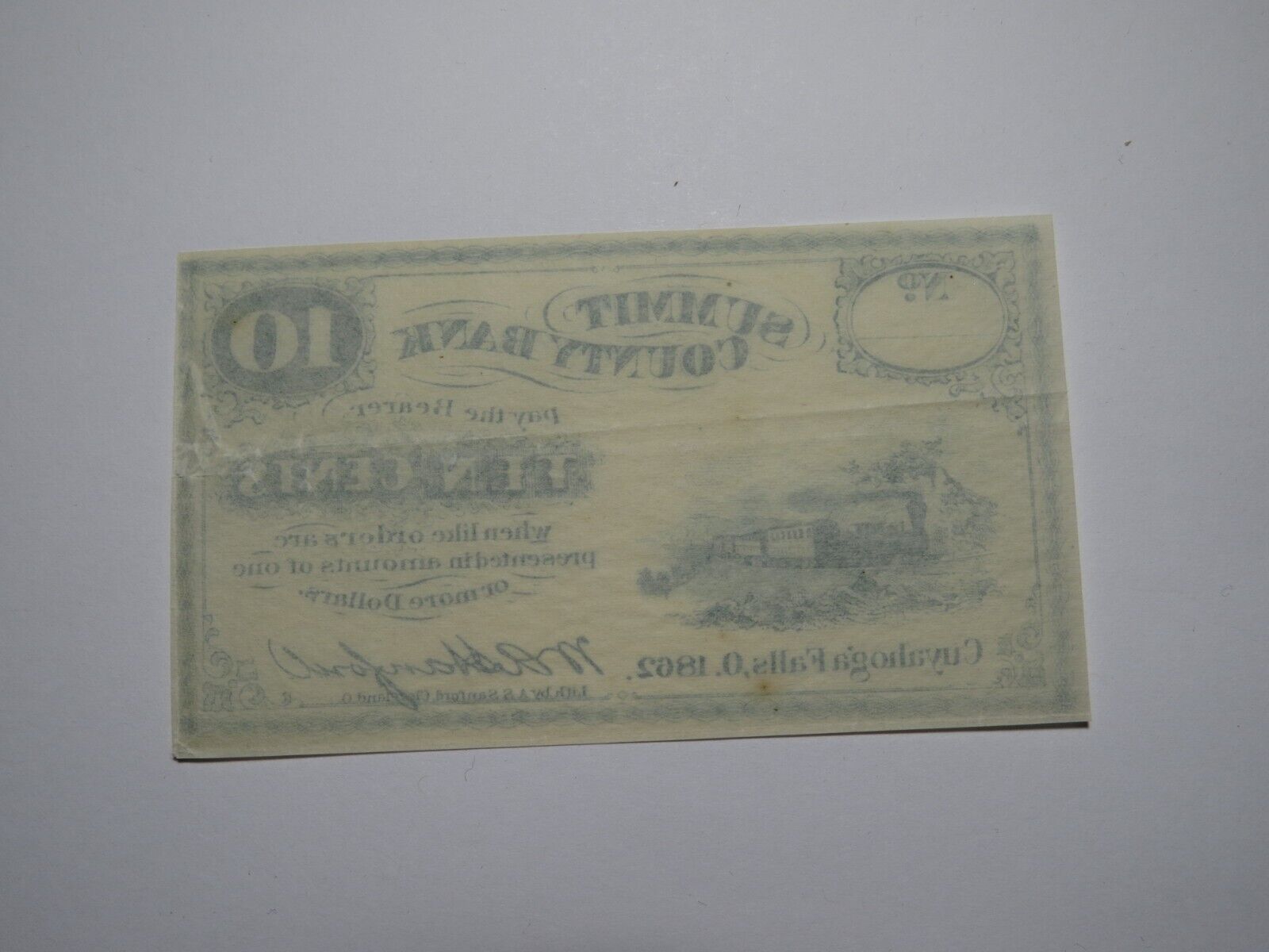 $.10 1862 Cuyahoga Falls Ohio Obsolete Currency Bank Note