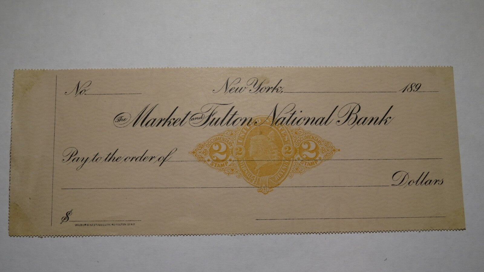 189_ Market and Fulton National Bank of New York Blank Check! Obsolete Currency