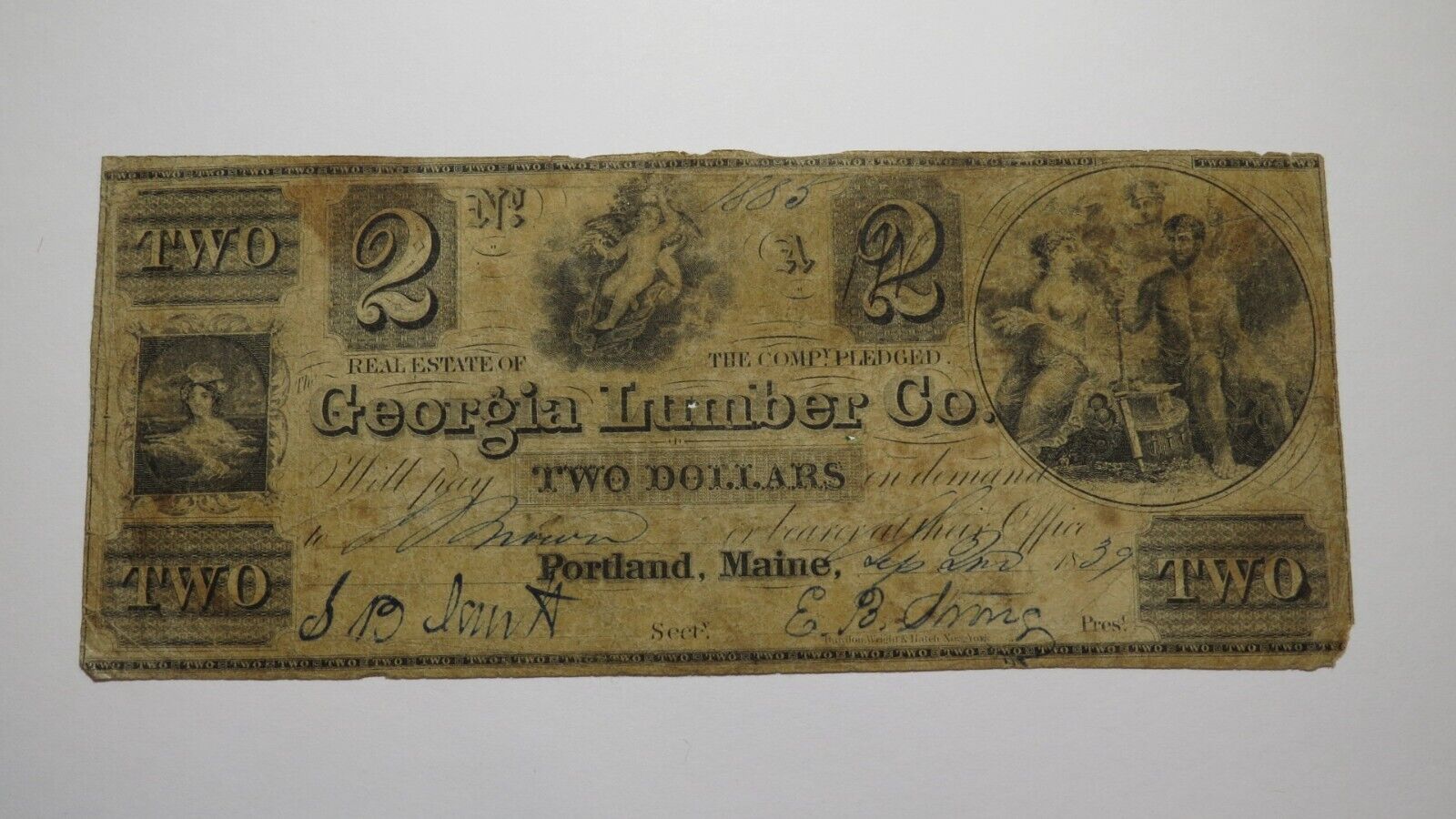 $2 1839 Portland Maine ME Obsolete Currency Bank Note Bill! Georgia Lumber Co.