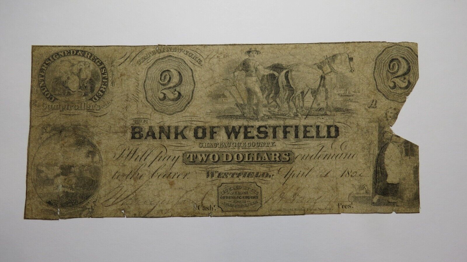 Up for auction is a $2 1852 Westfield New York Obsolete Bank Note. This note is dated April 11, 1852. This note was issued by The Bank of Westfield. This is a contemporary counterfeit. This bill is a must have for any collector of Obsolete Currency!