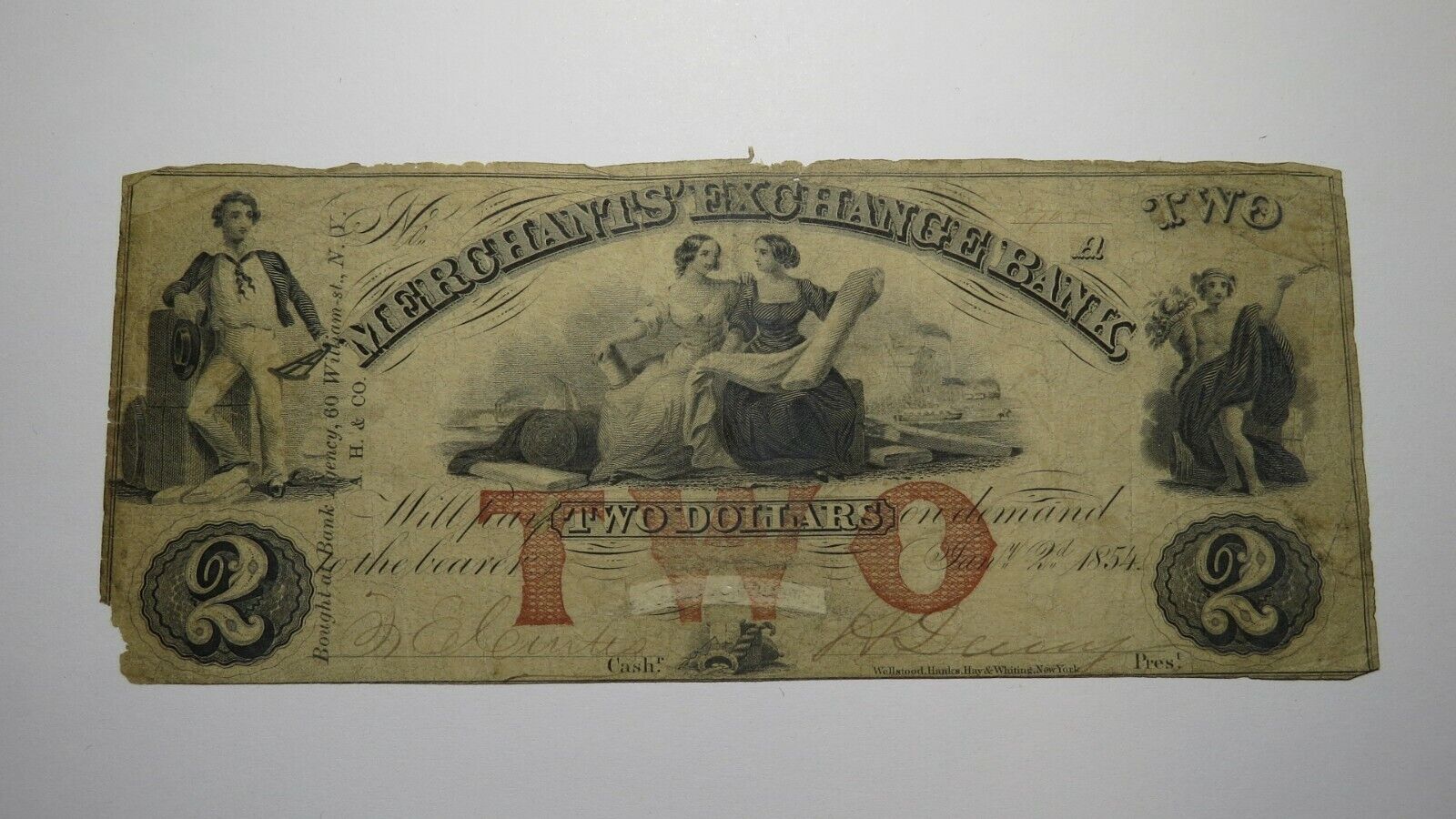 Up for auction is a $2 1854 Washington D.C. Obsolete Currency Note. This note is dated January 2, 1854. This note was issued by The Merchants Exchange Bank. This is a tough to find issue! This bill is a must have for any collector of Obsolete Currency!