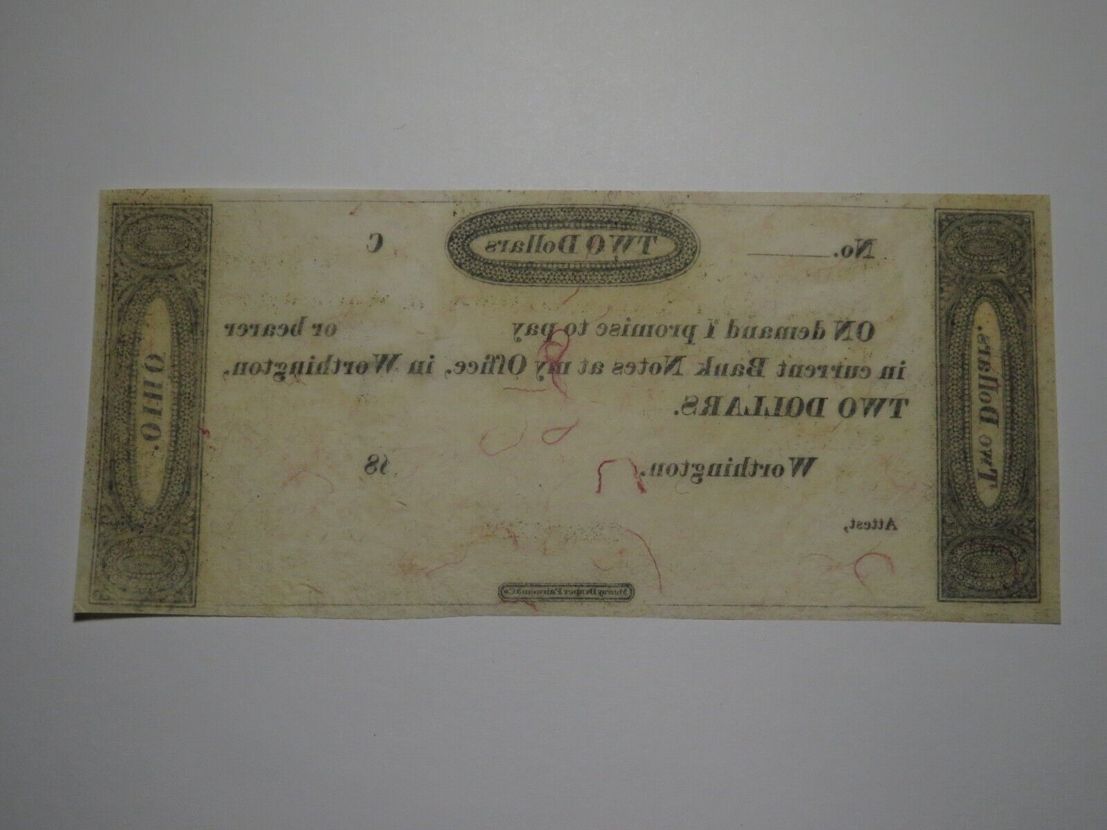 Up for auction is a $2 18__ Worthington Ohio Obsolete Remainder Bank Note. This note was issued by The Office of Erza Griswold. This note is in Crisp Uncirculated condition. This note is extremely rare, and it is getting much harder to find this type of bill! This bill is a must have for any collector of Obsolete Currency!