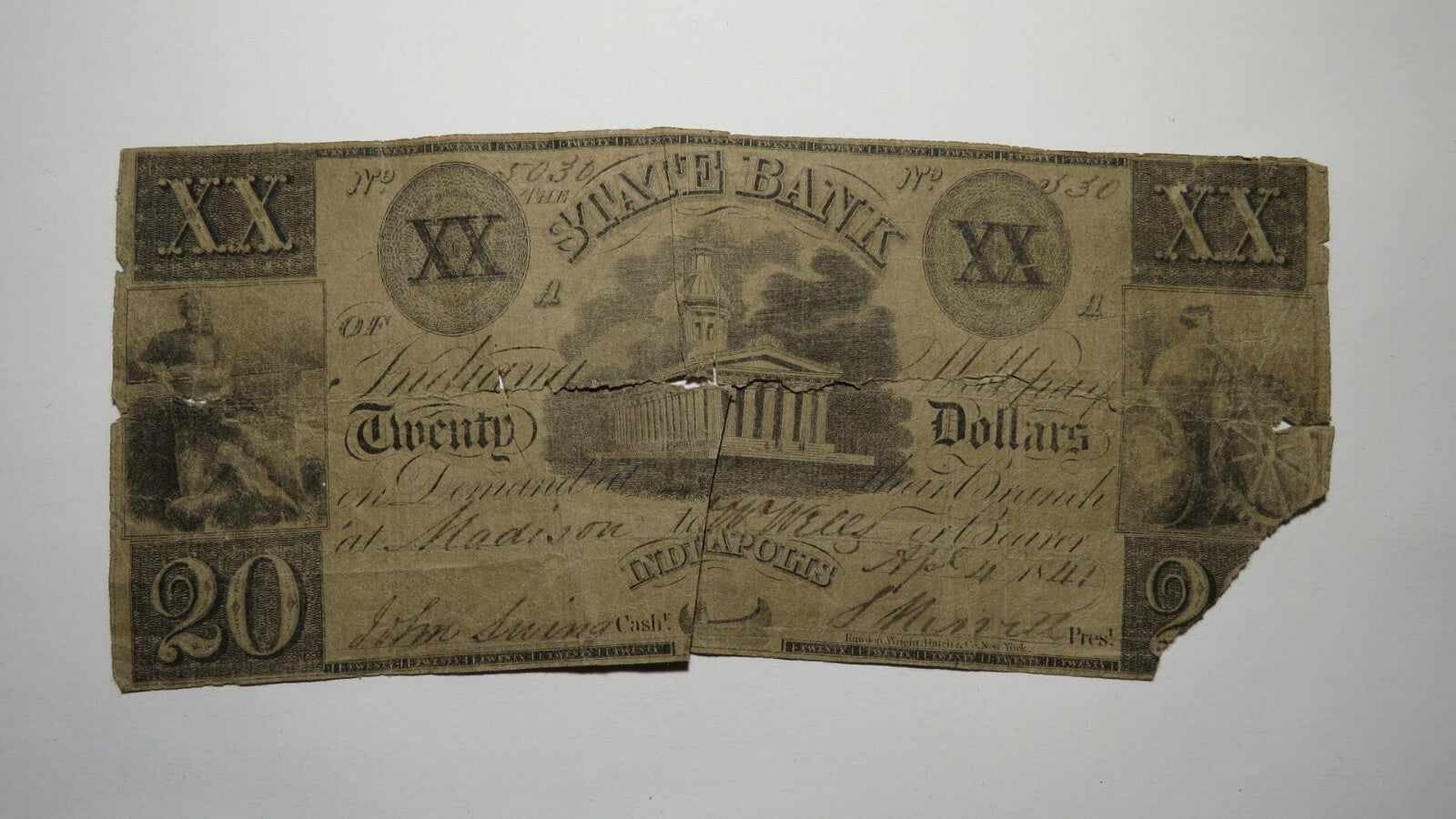 $20 1841 Indianapolis Indiana Obsolete Bank Note!