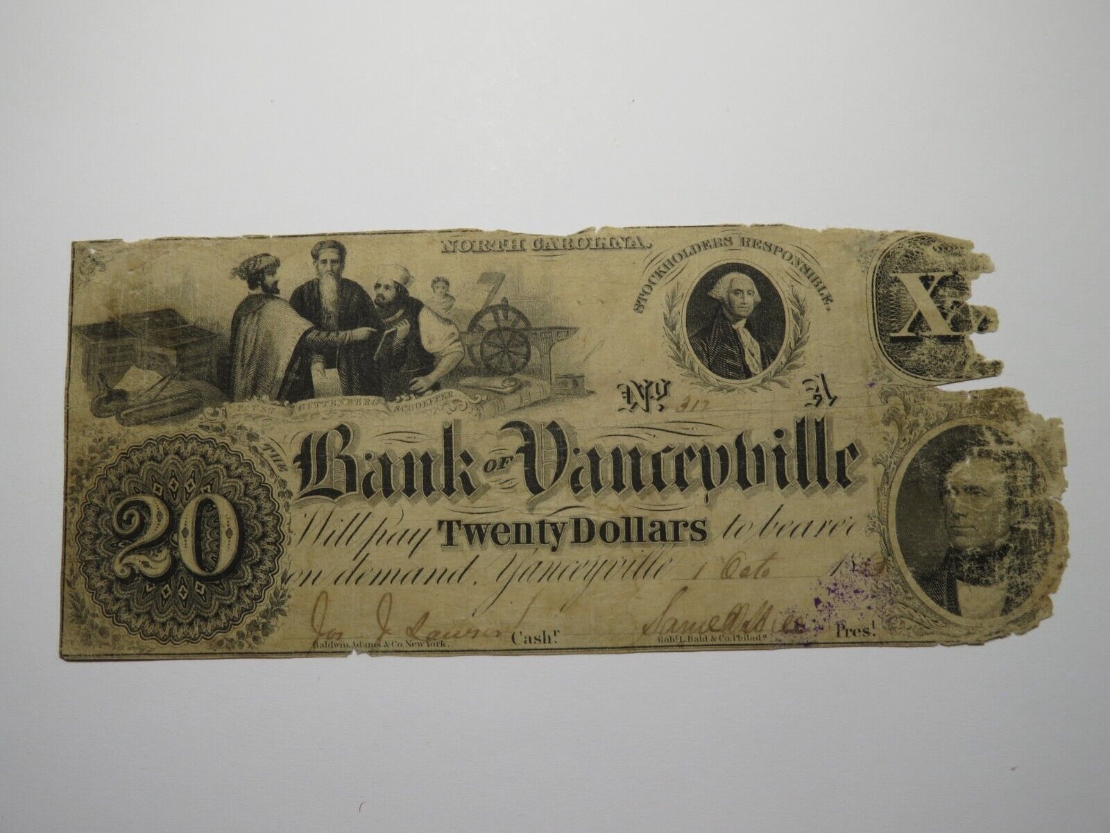 $20 1853 Yanceyville North Carolina Obsolete Bank Note!