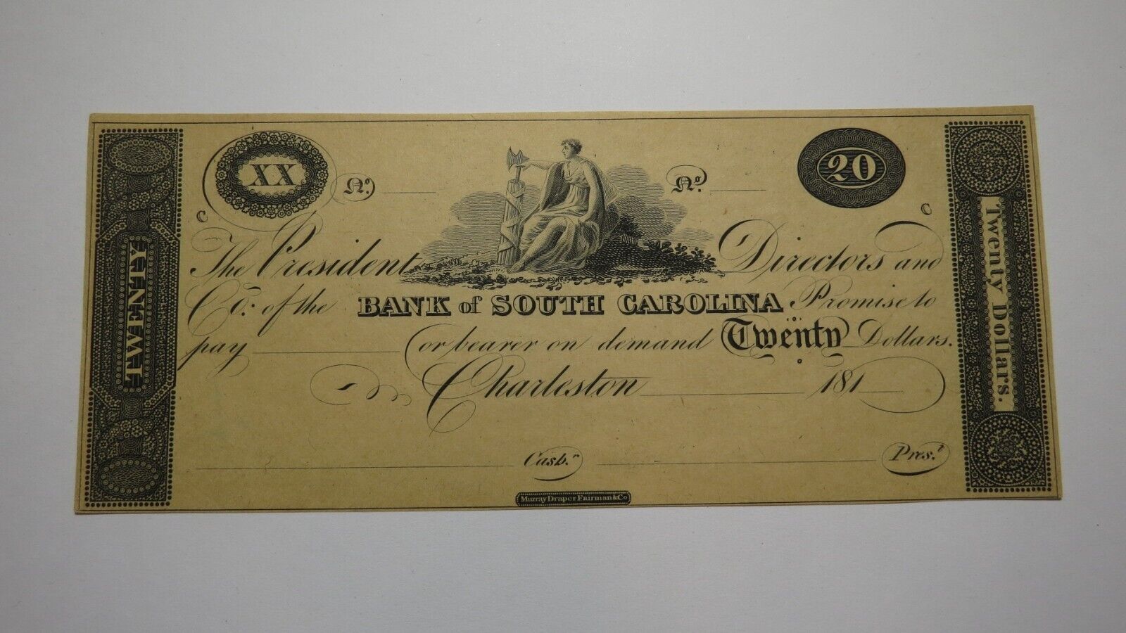 $20 18__ Charleston South Carolina Obsolete Currency Bank Note Original Reprint!