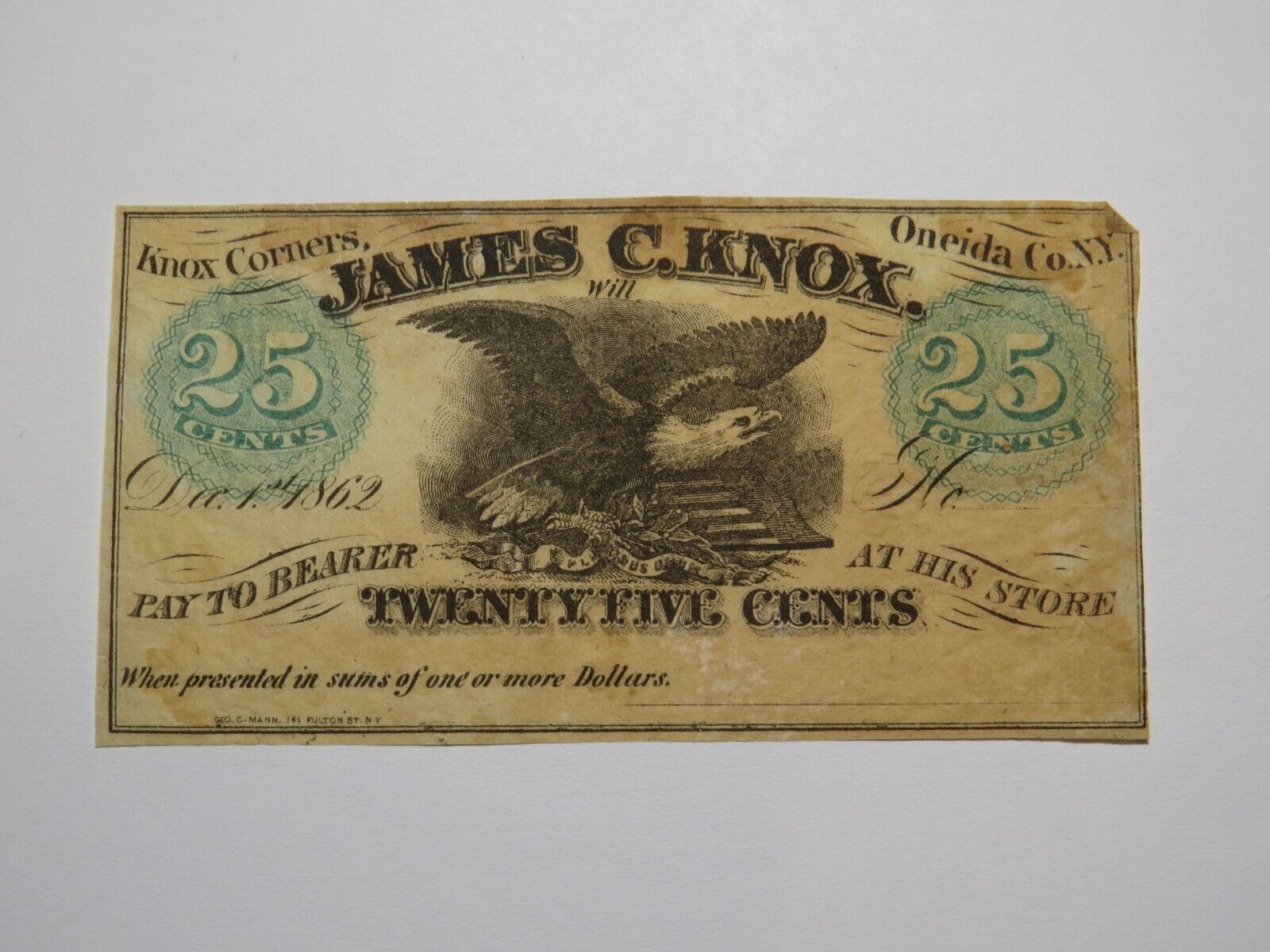 $.25 1862 Knox Corners New York NY Obsolete Currency Bank Note Bill Oneida Co.