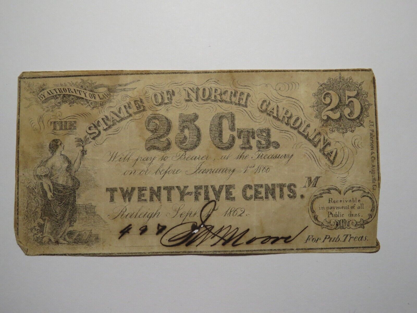 $.25 1863 Raleigh North Carolina Obsolete Bank Note!