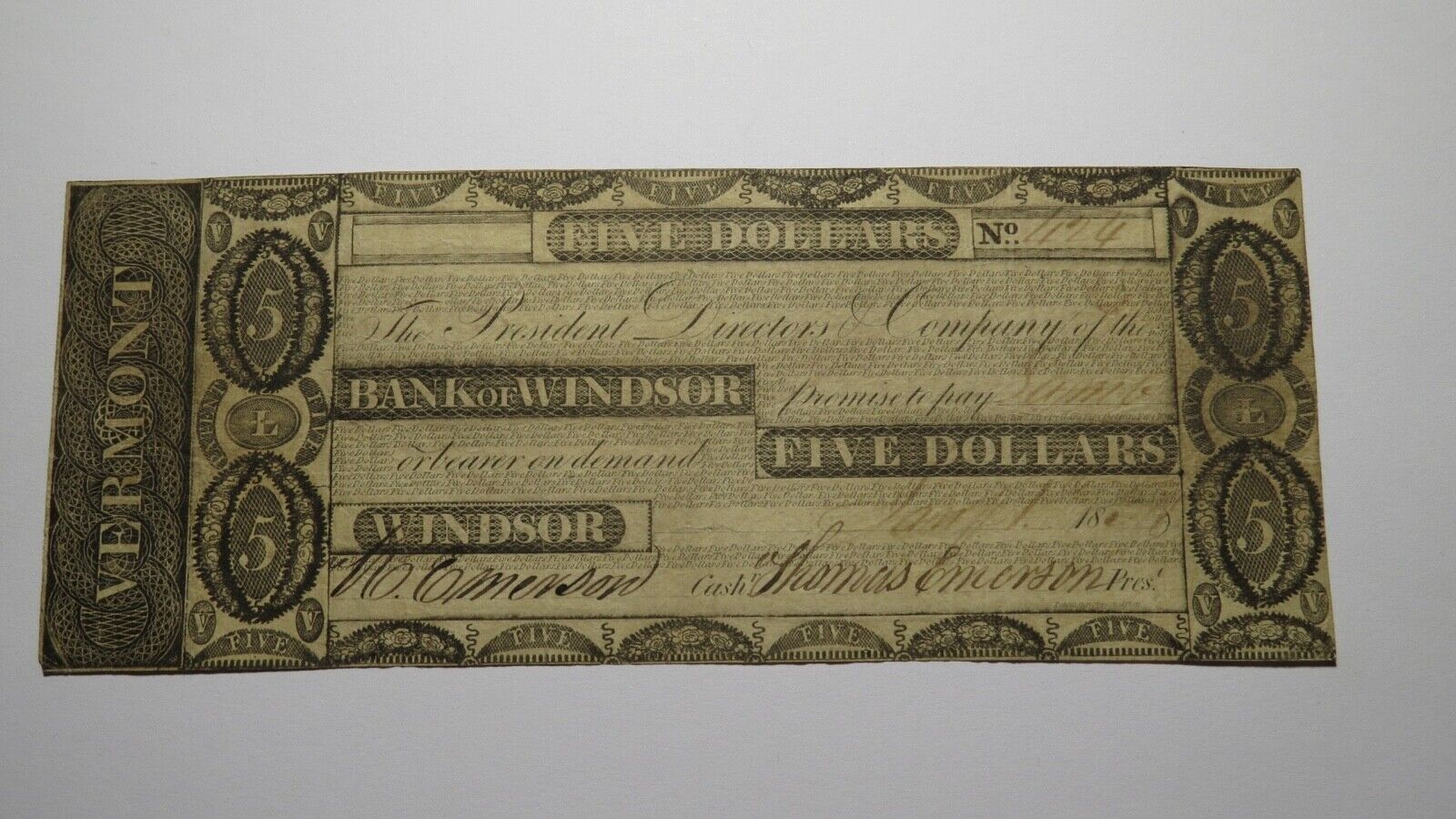 $5 1831 Windsor Vermont Obsolete Bank Note!
