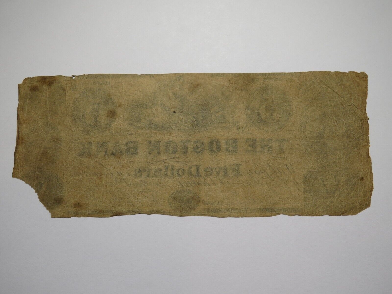 $5 1852 Boston Massachusetts Obsolete Bank Note!