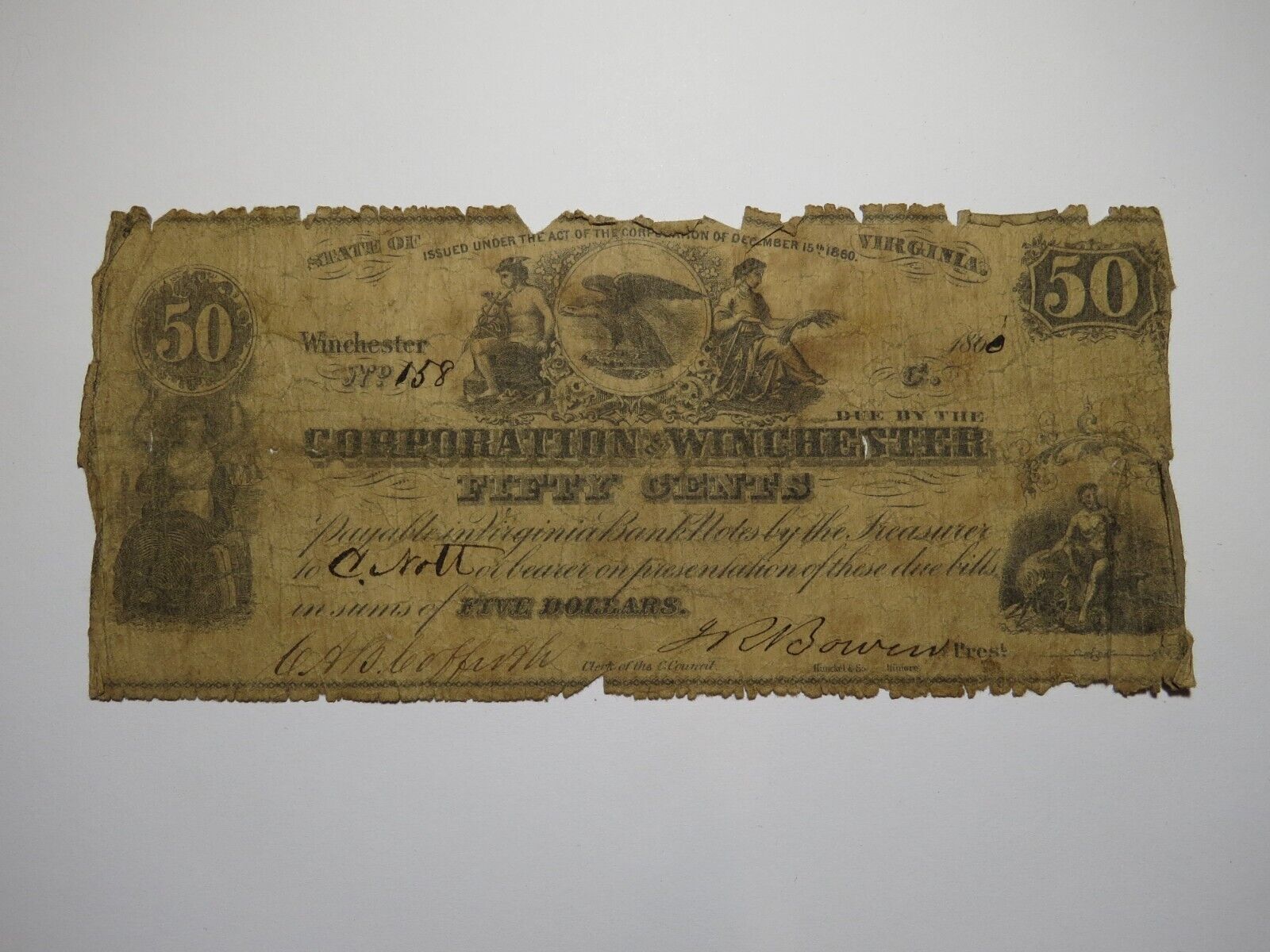 $.50 1860 Winchester Virginia VA Obsolete Currency Bank Note Bill Corp. of Win.