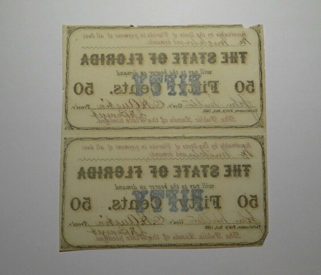 $.50 1863 Tallahassee Florida FL Uncut Pair of Obsolete Currency Bank Note Bills