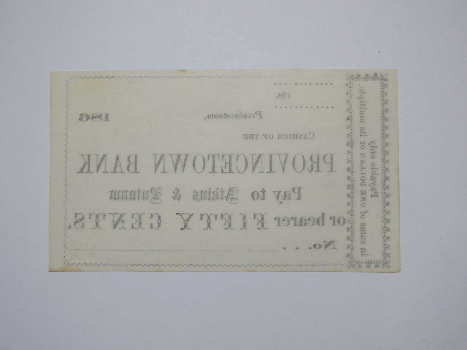 $.50 186_ Provincetown Massachusetts Obsolete Bank Note!
