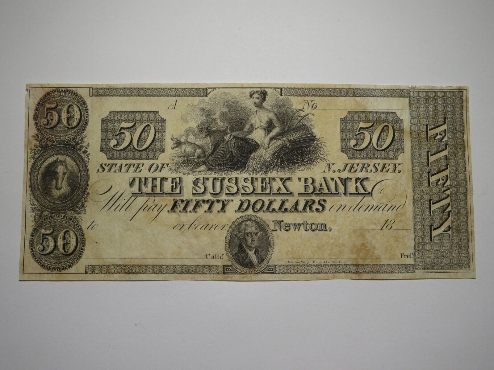Up for auction is a $50 18__ Newton New Jersey Obsolete Currency Bank Note Remainder