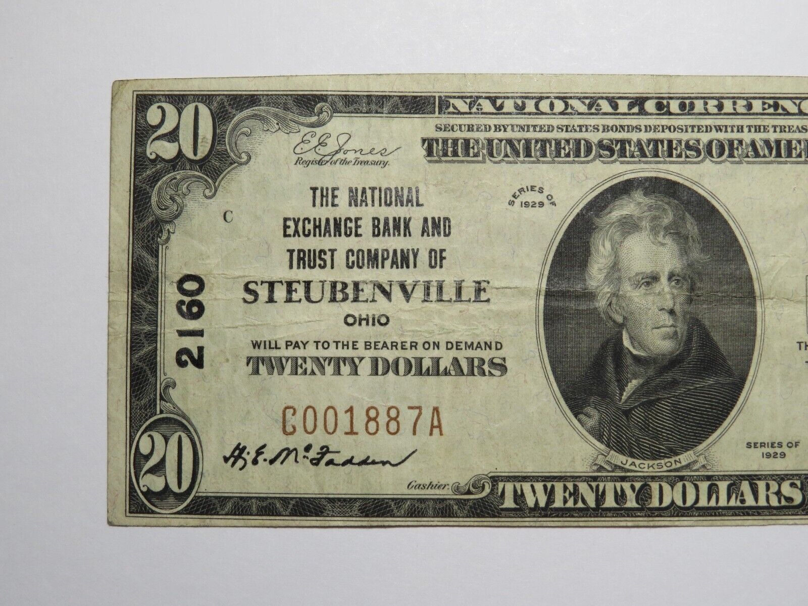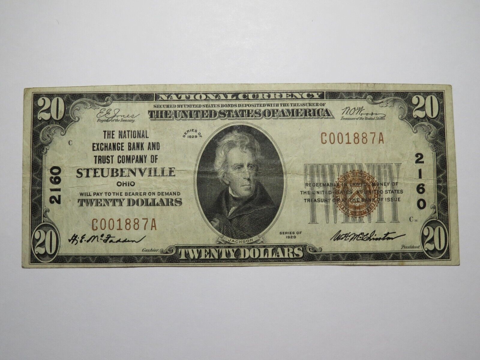 $20 1929 Steubenville Ohio OH National Currency Bank Note Bill Ch. #2160 VF+