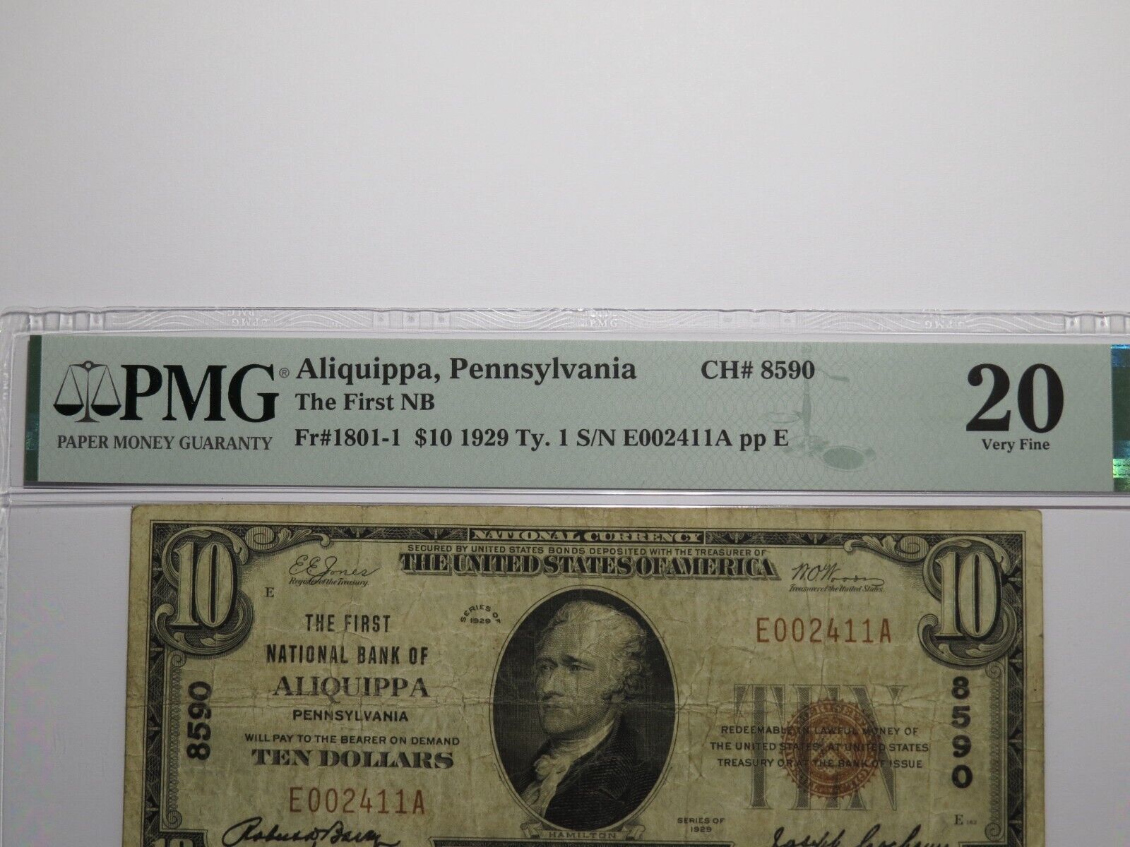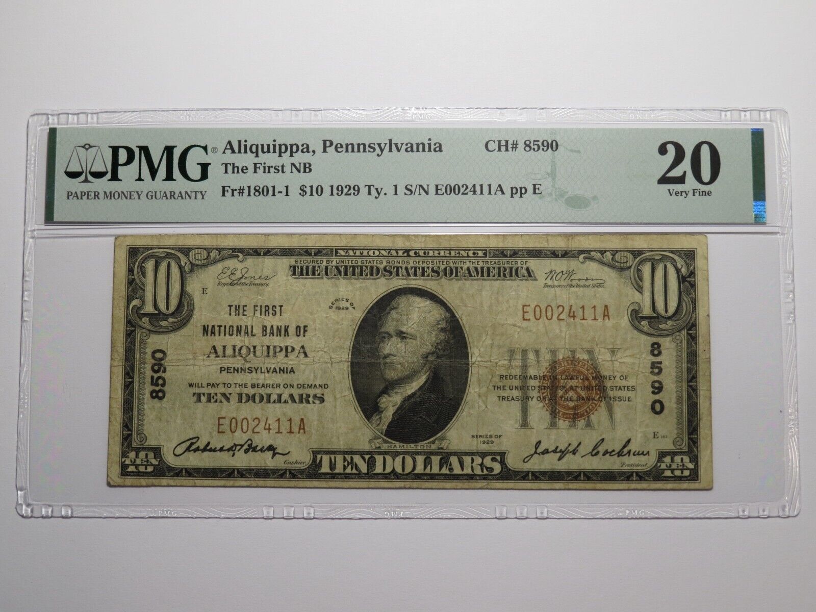 $10 1929 Aliquippa Pennsylvania National Currency Bank Note Bill Ch. #8590 VF20
