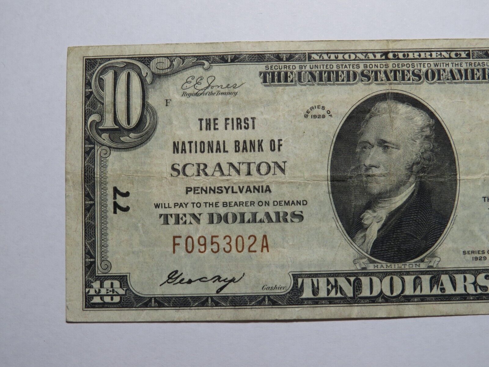 $10 1929 Type 1 Scranton Pennsylvania National Currency Note