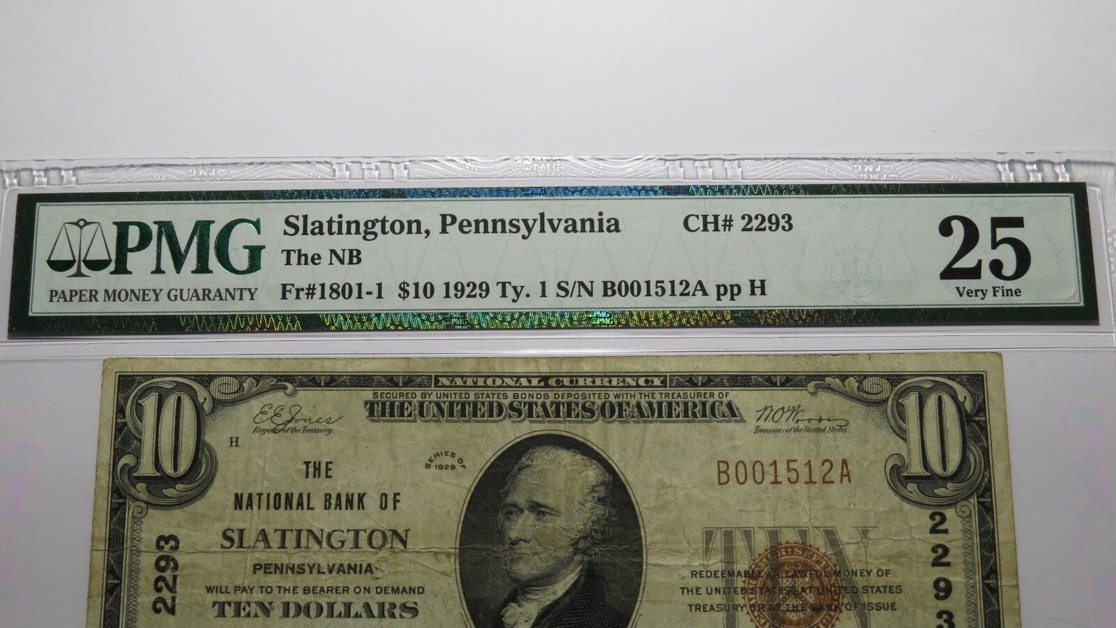 $10 1929 Slatington Pennsylvania PA National Currency Bank Note Bill #2293 VF25