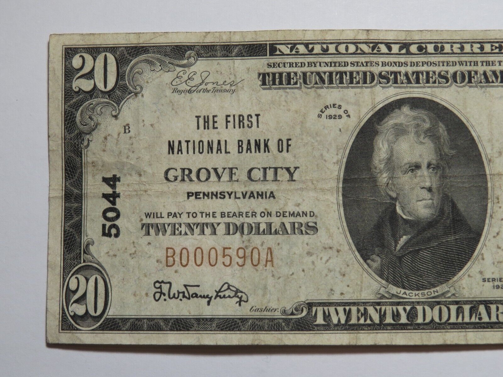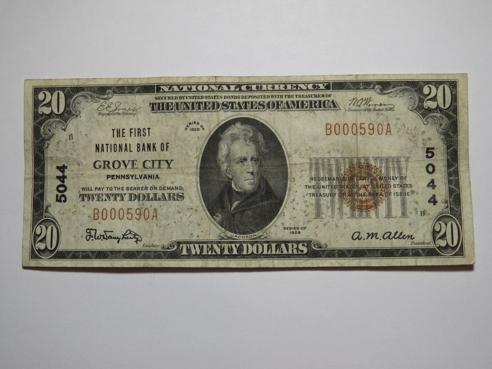 $20 1929 Type 1 Grove City Pennsylvania National Currency Note!