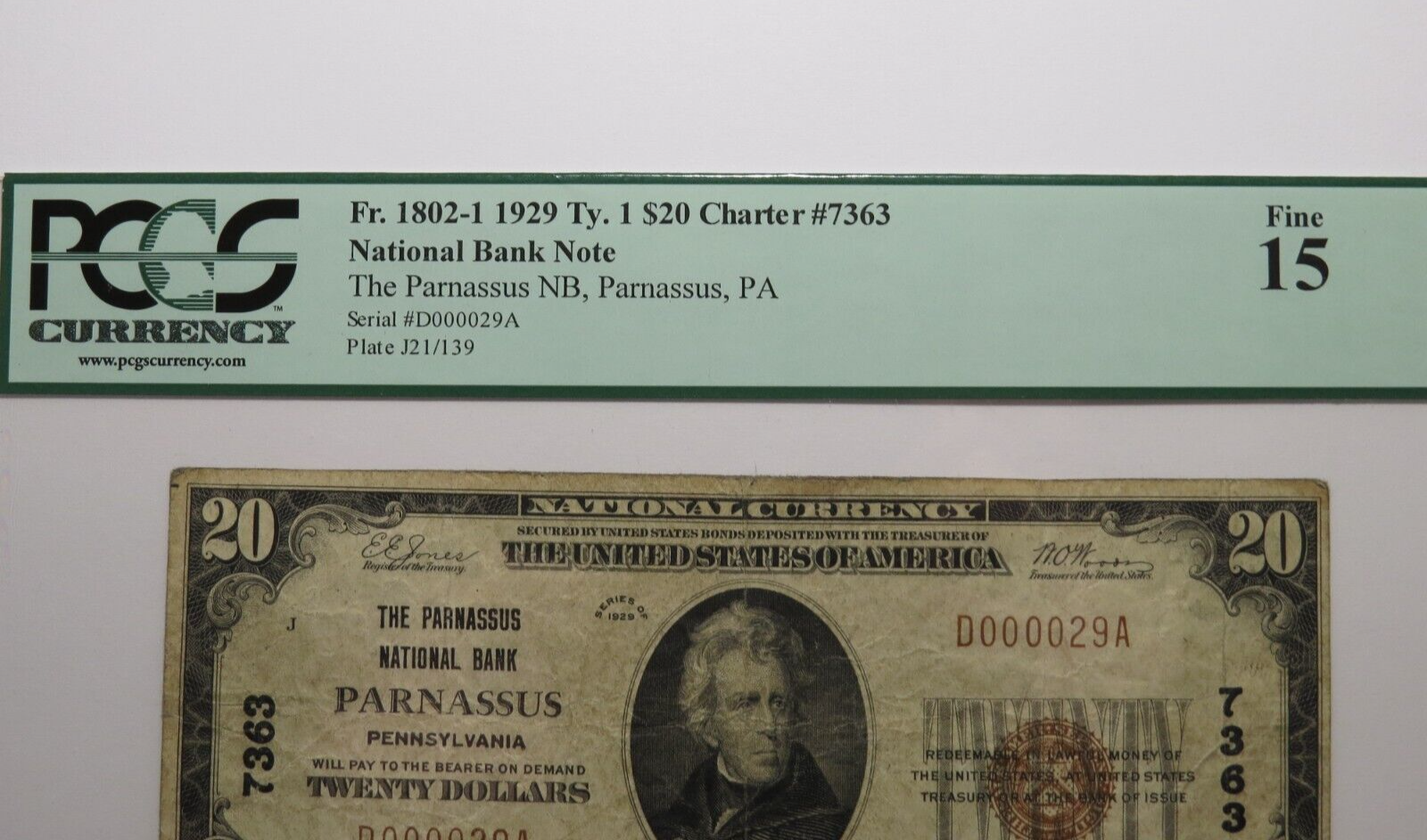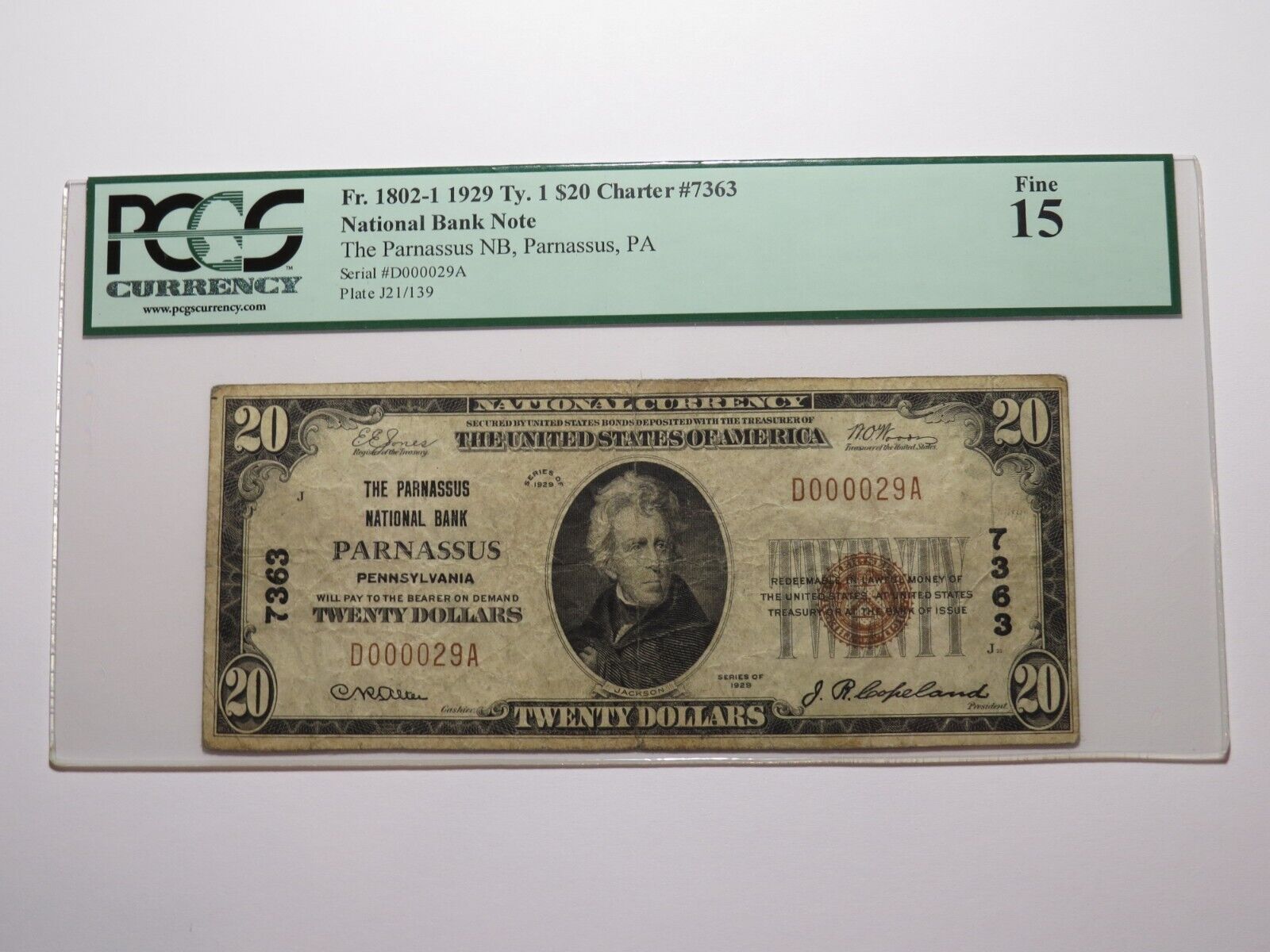 $20 1929 Parnassus Pennsylvania National Currency Bank Note Bill Ch. #7363 PCGS